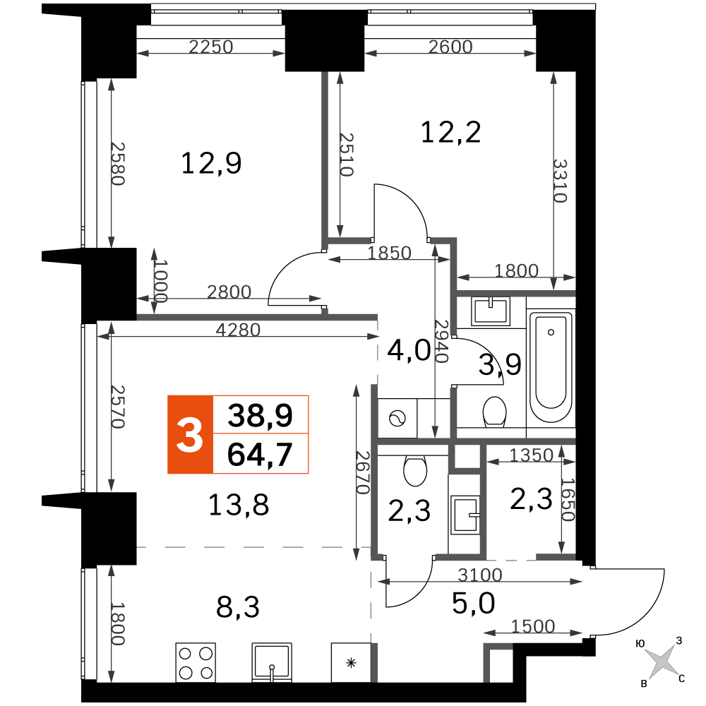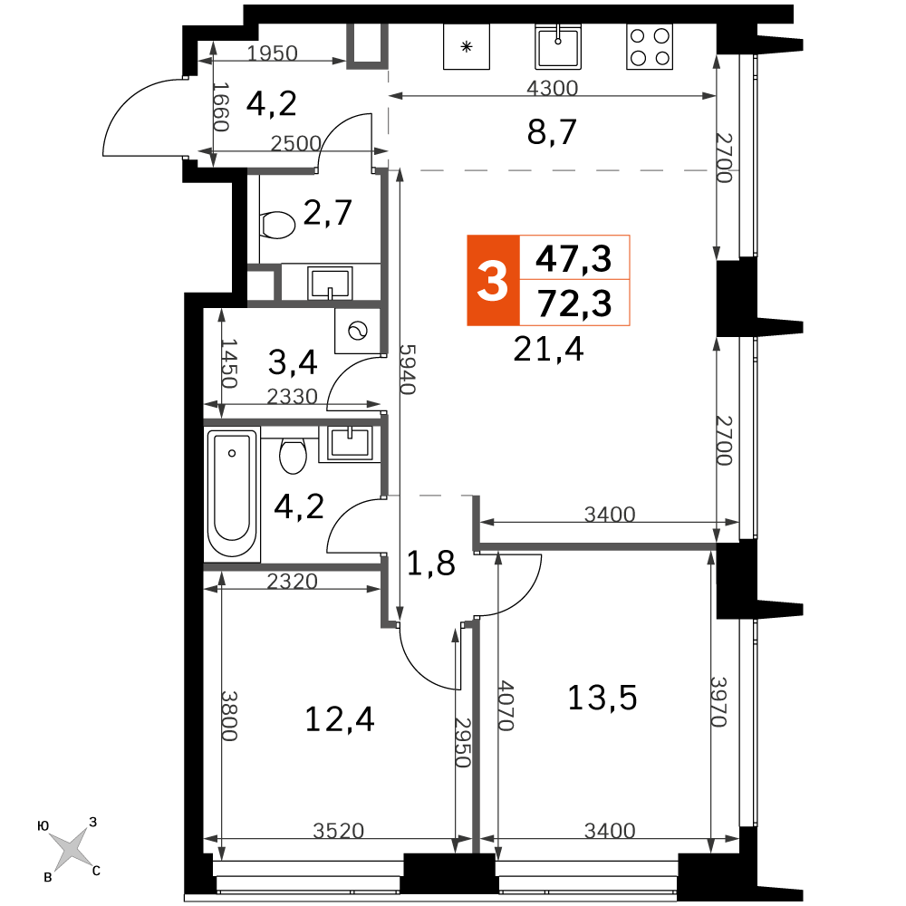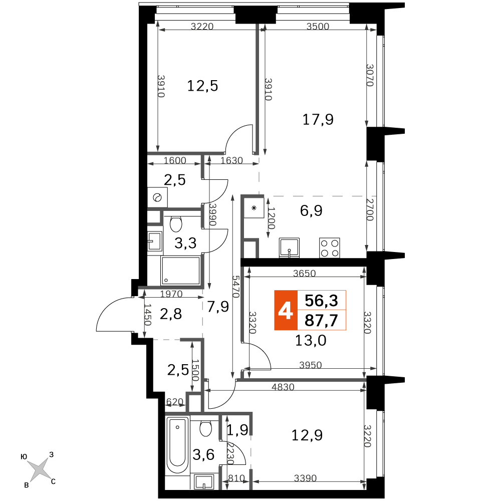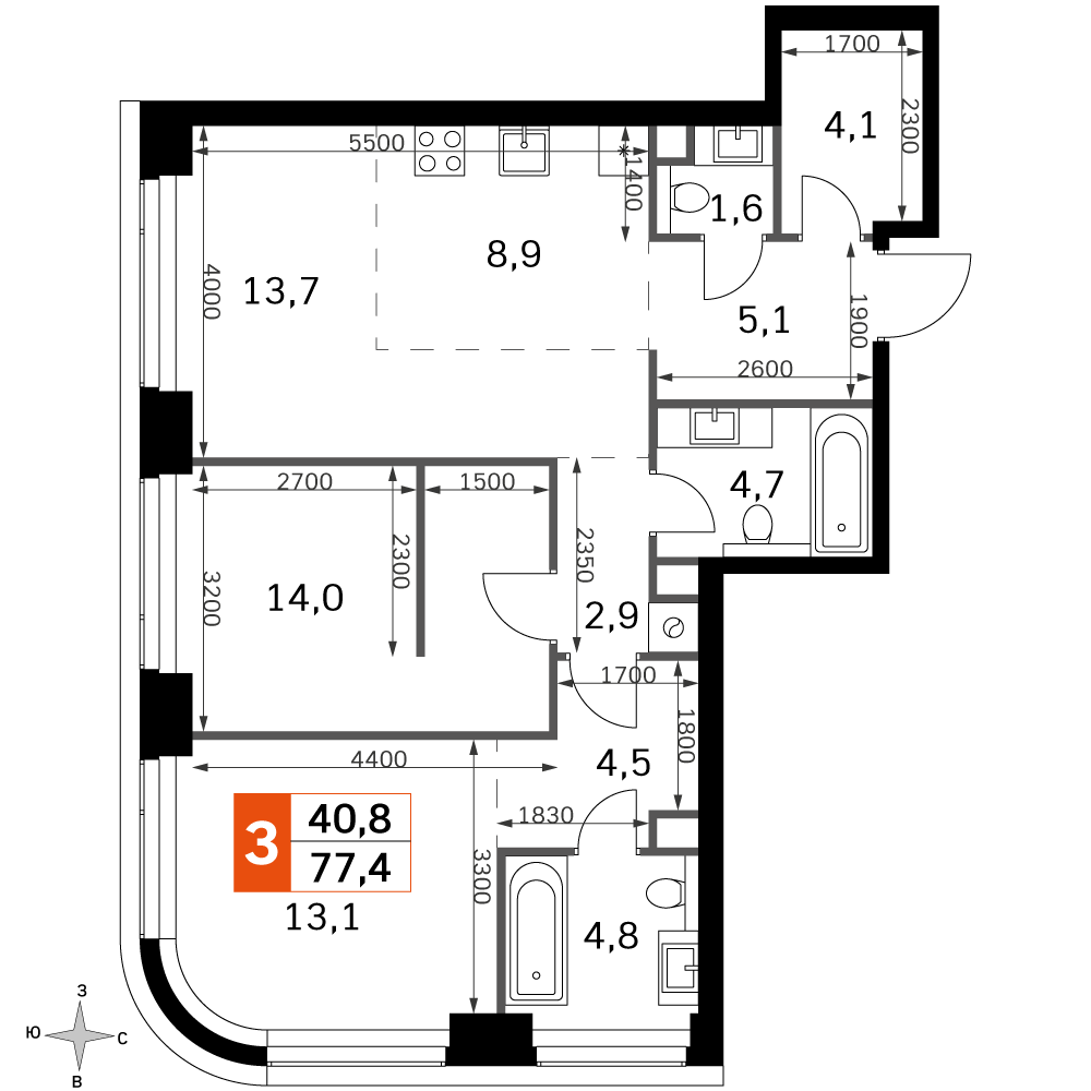 | 5 | Июнь 2028 | 1 | 33 | 13 | 13 | 4 | 86.9 | 72 852 615 | без отделки | 13 | |||