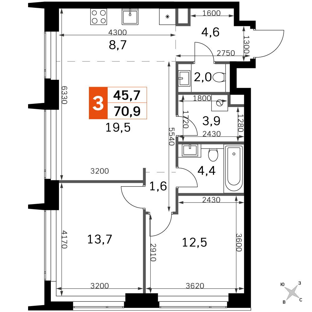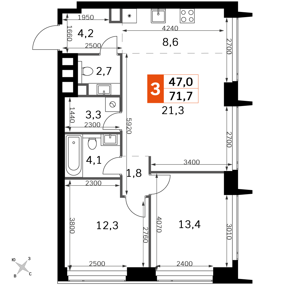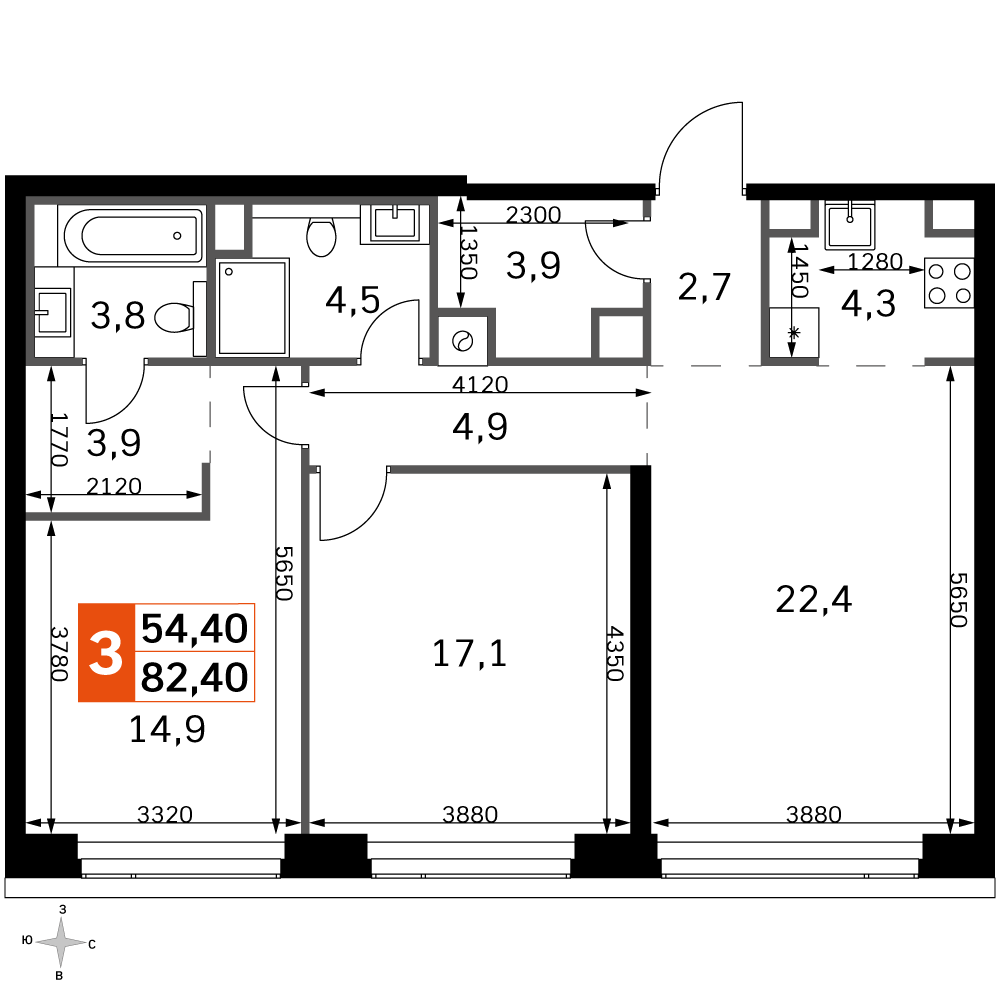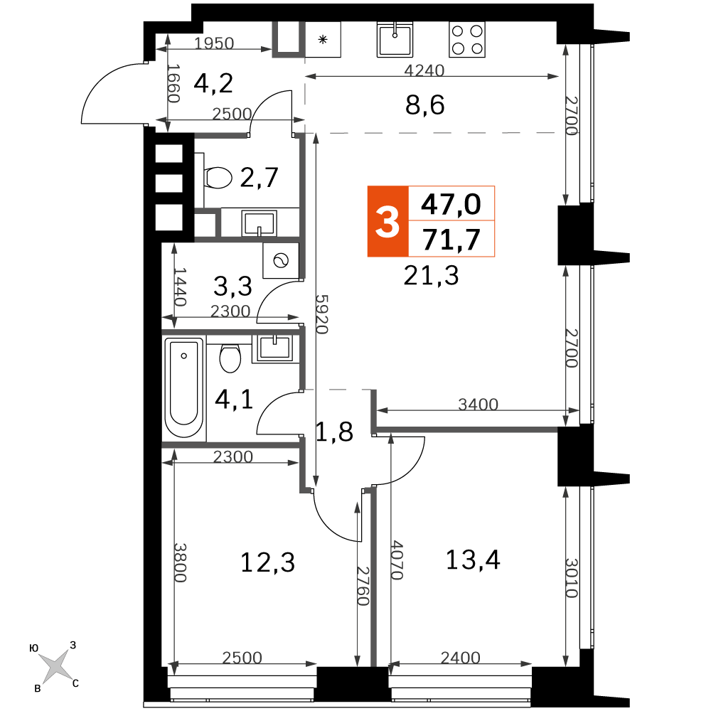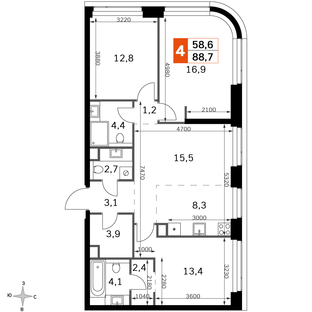 | 5 | Июнь 2028 | 1 | 33 | 13 | 13 | 4 | 86.9 | 72 852 615 | без отделки | 13 | |||