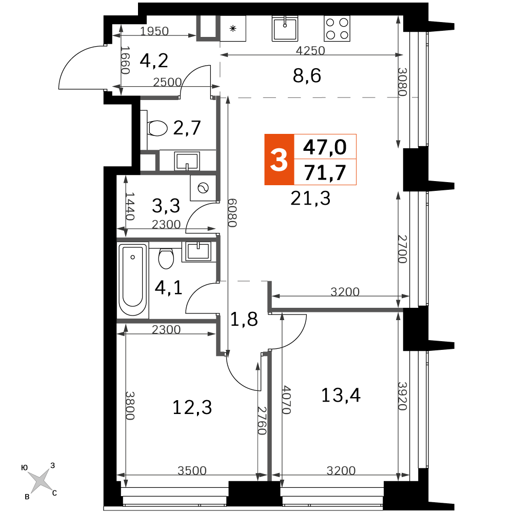 | 5 | Июнь 2028 | 1 | 39 | 1 | 1 | 3 | 71.7 | 61 959 555 | без отделки | ![]() | 1 | ||