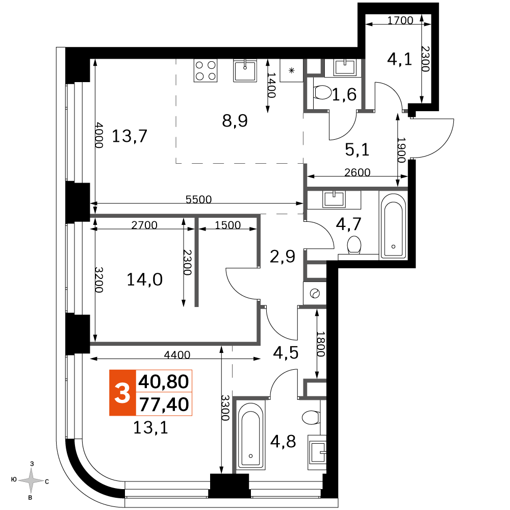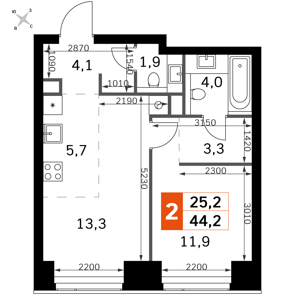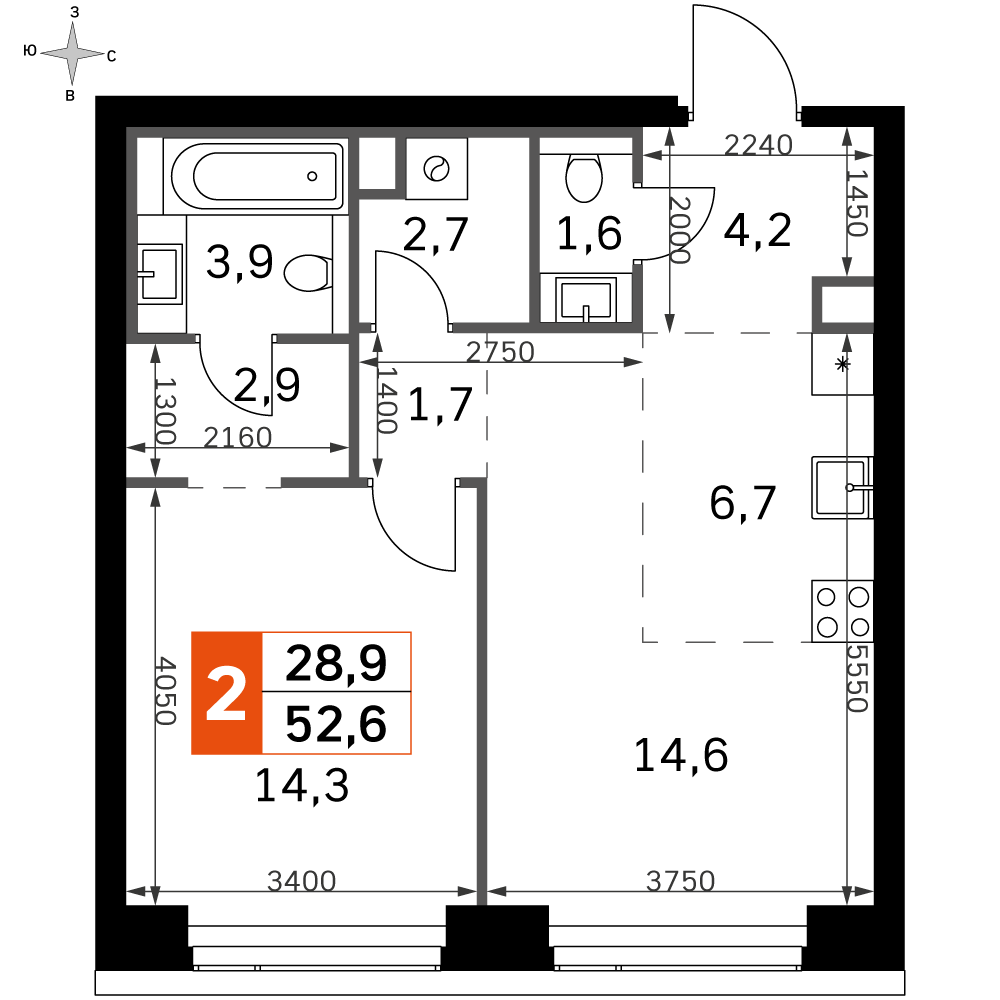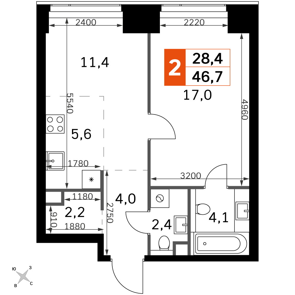 | 5 | Июнь 2028 | 1 | 40 | 10 | 10 | 2 | 55.1 | 44 002 860 | без отделки | ![]() | 10 | ||