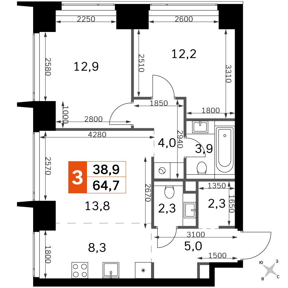 | 5 | Июнь 2028 | 1 | 39 | 13 | 13 | 4 | 86.9 | 74 720 965 | без отделки | 13 | |||