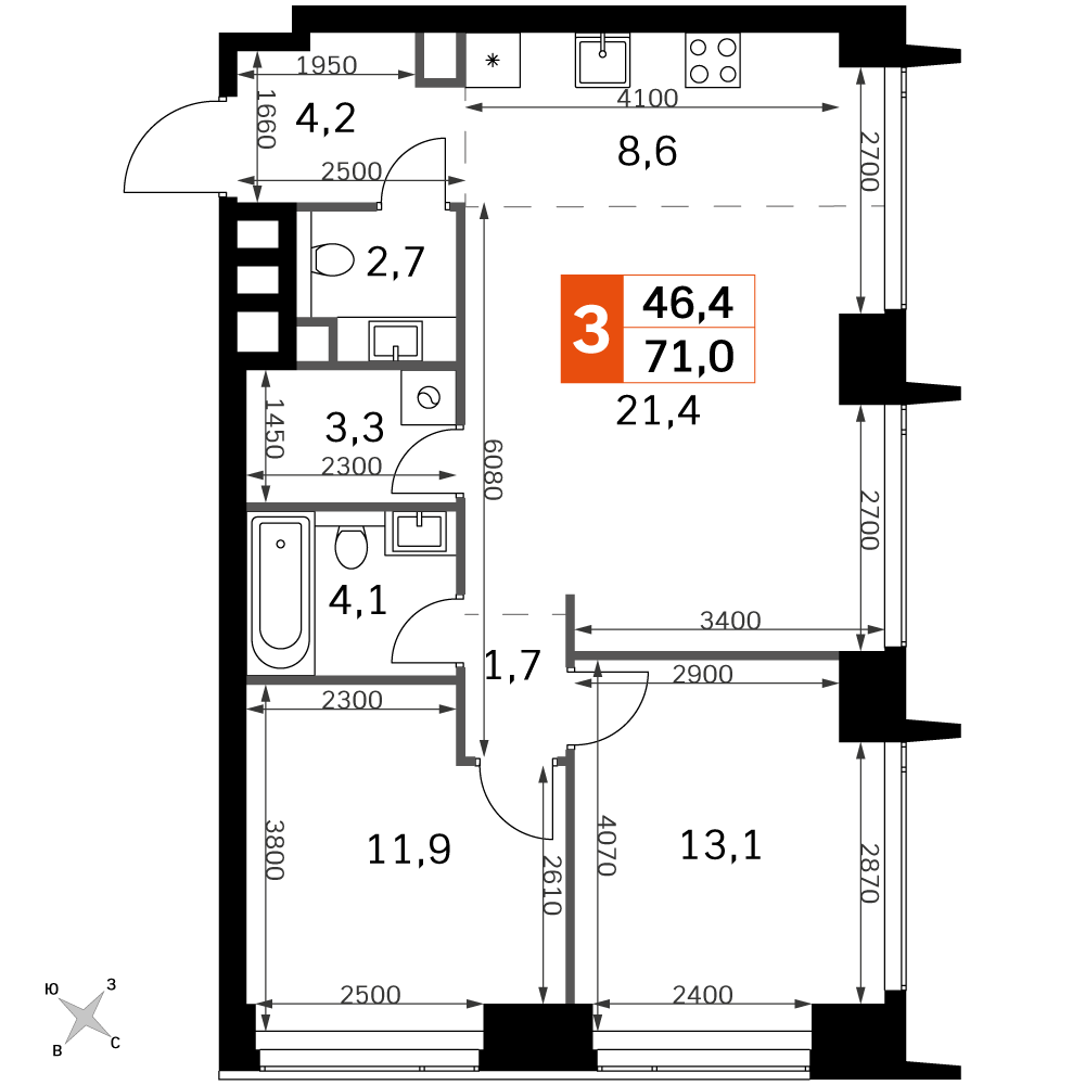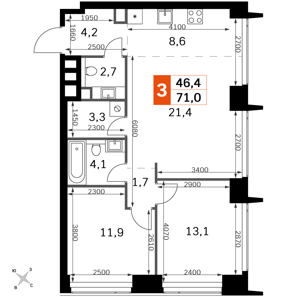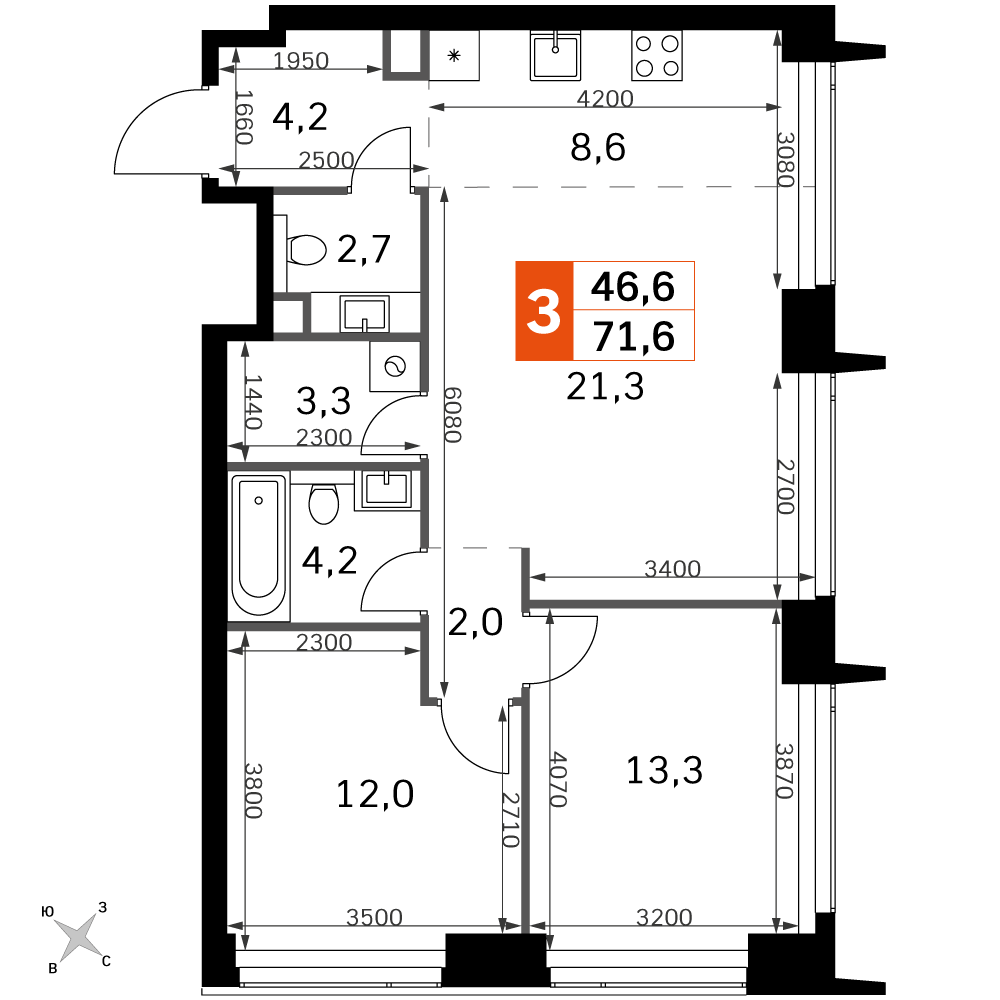 | 5 | Июнь 2028 | 1 | 26 | 13 | 13 | 4 | 86.7 | 71 579 520 | без отделки | 13 | |||