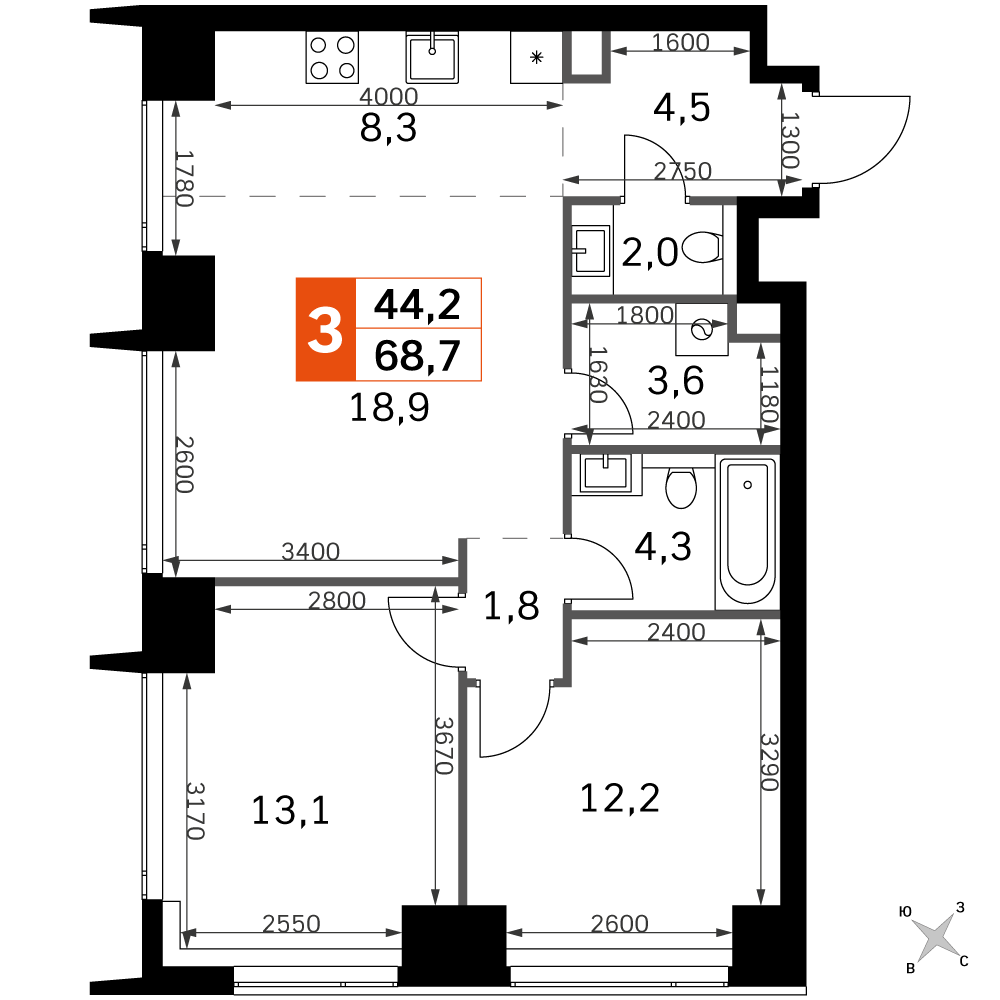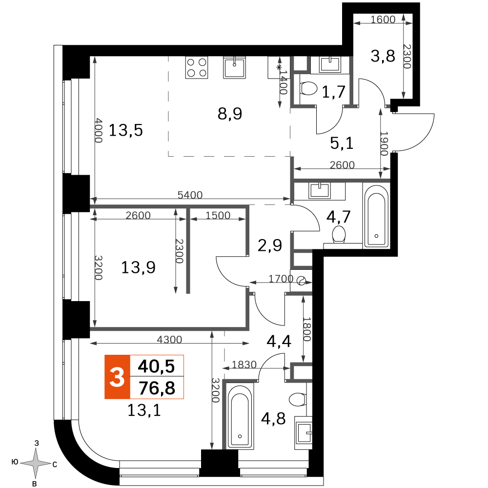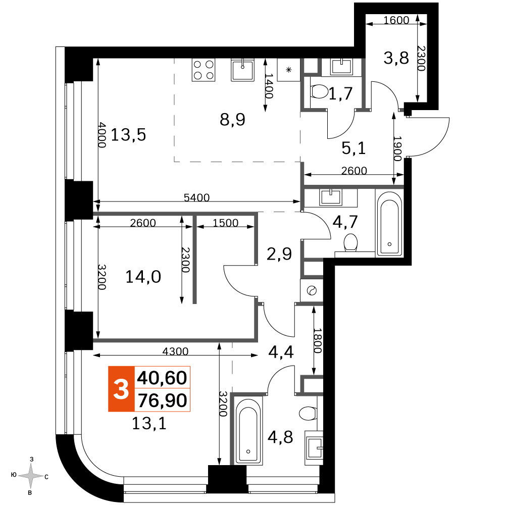 | 5 | Июнь 2028 | 1 | 44 | 13 | 13 | 4 | 86.9 | 76 306 890 | без отделки | 13 | |||