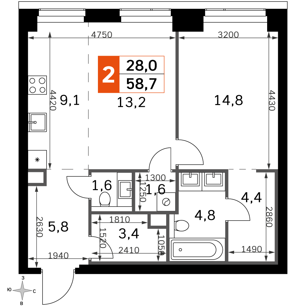 | 5 | Июнь 2028 | 1 | 32 | 3 | 3 | 2 | 58.3 | 55 070 180 | с отделкой | 3 | |||