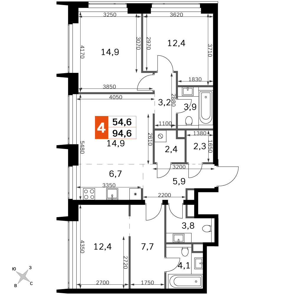 | 5 | Июнь 2028 | 1 | 54 | 12 | 12 | 4 | 87.7 | 81 745 170 | без отделки | 12 | |||