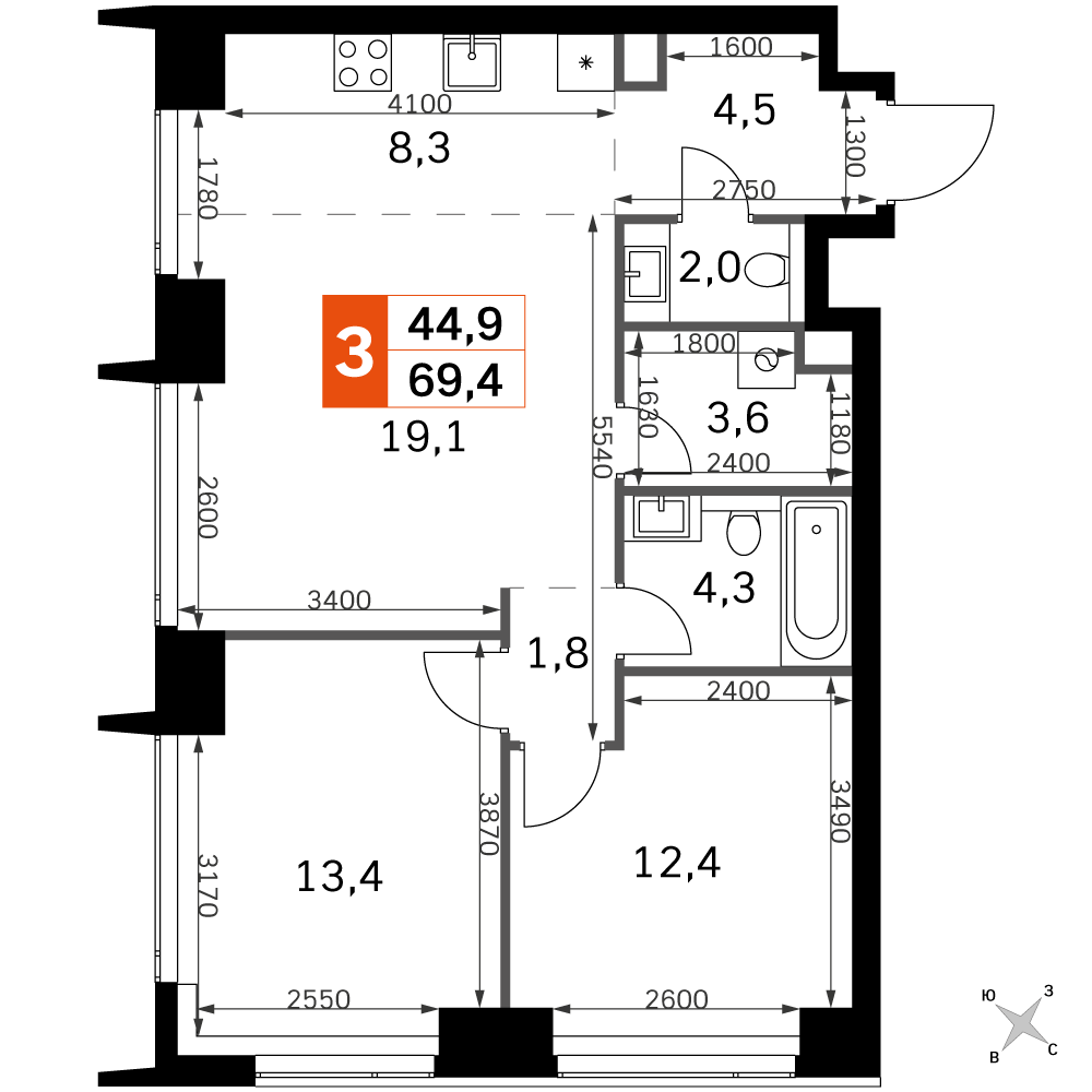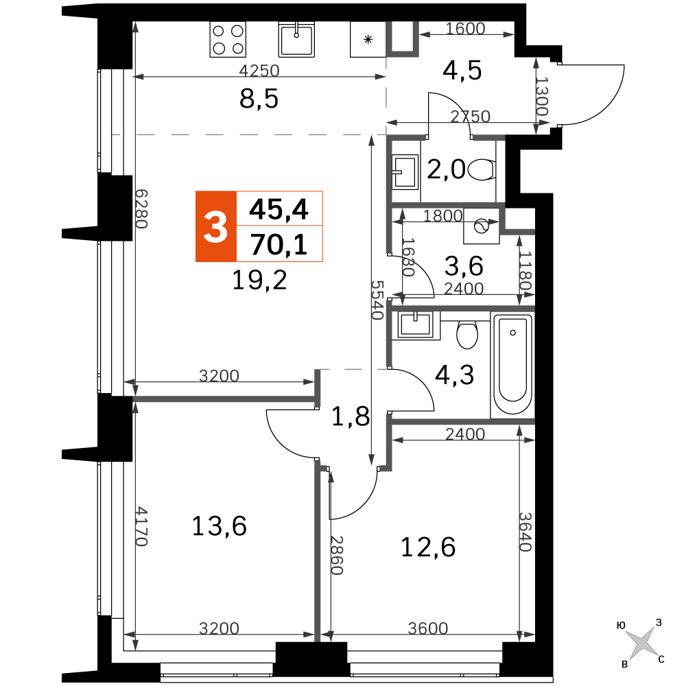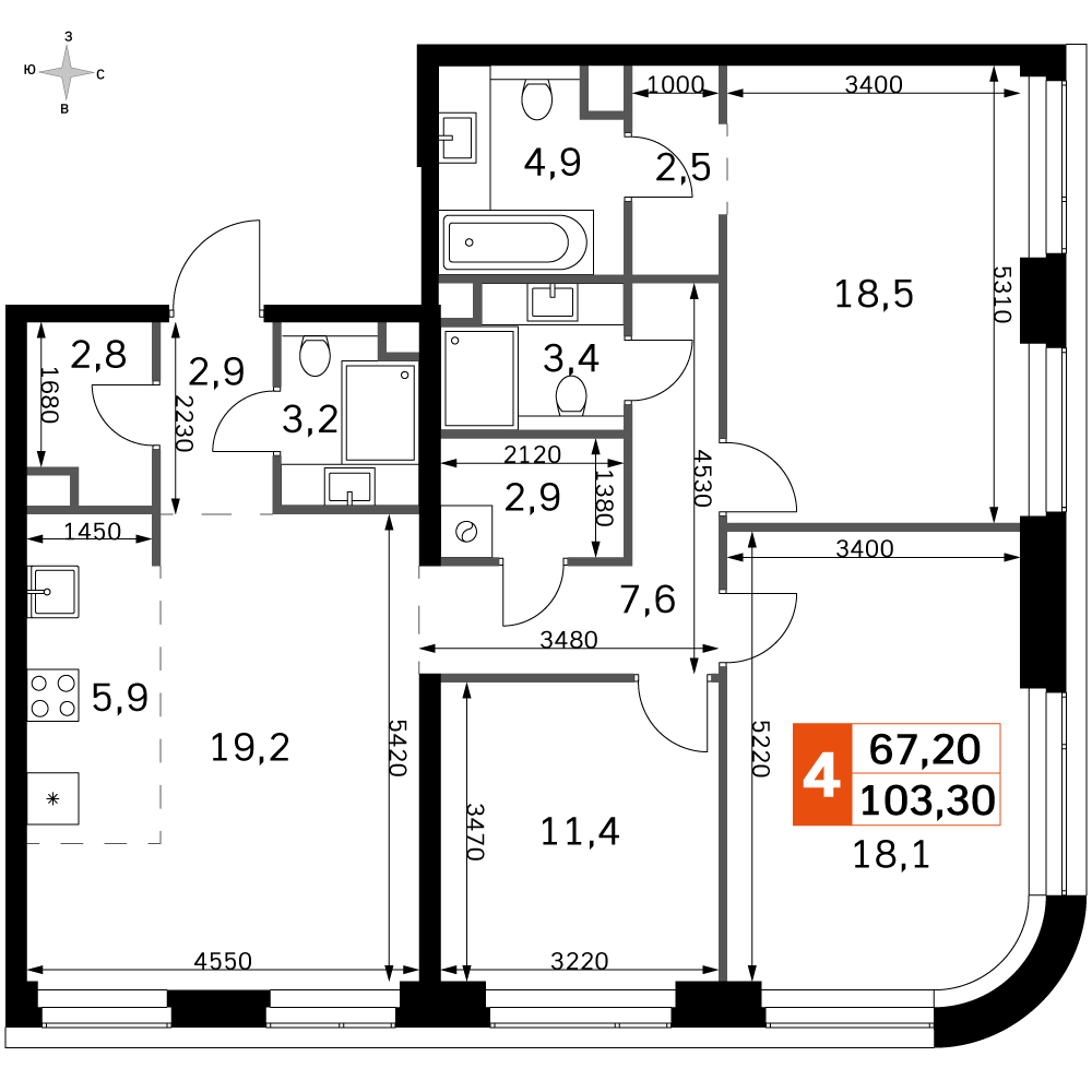 | 5 | Июнь 2028 | 1 | 9 | 6 | 6 | 3 | 69.4 | 55 912 110 | без отделки | ![]() | 6 | ||