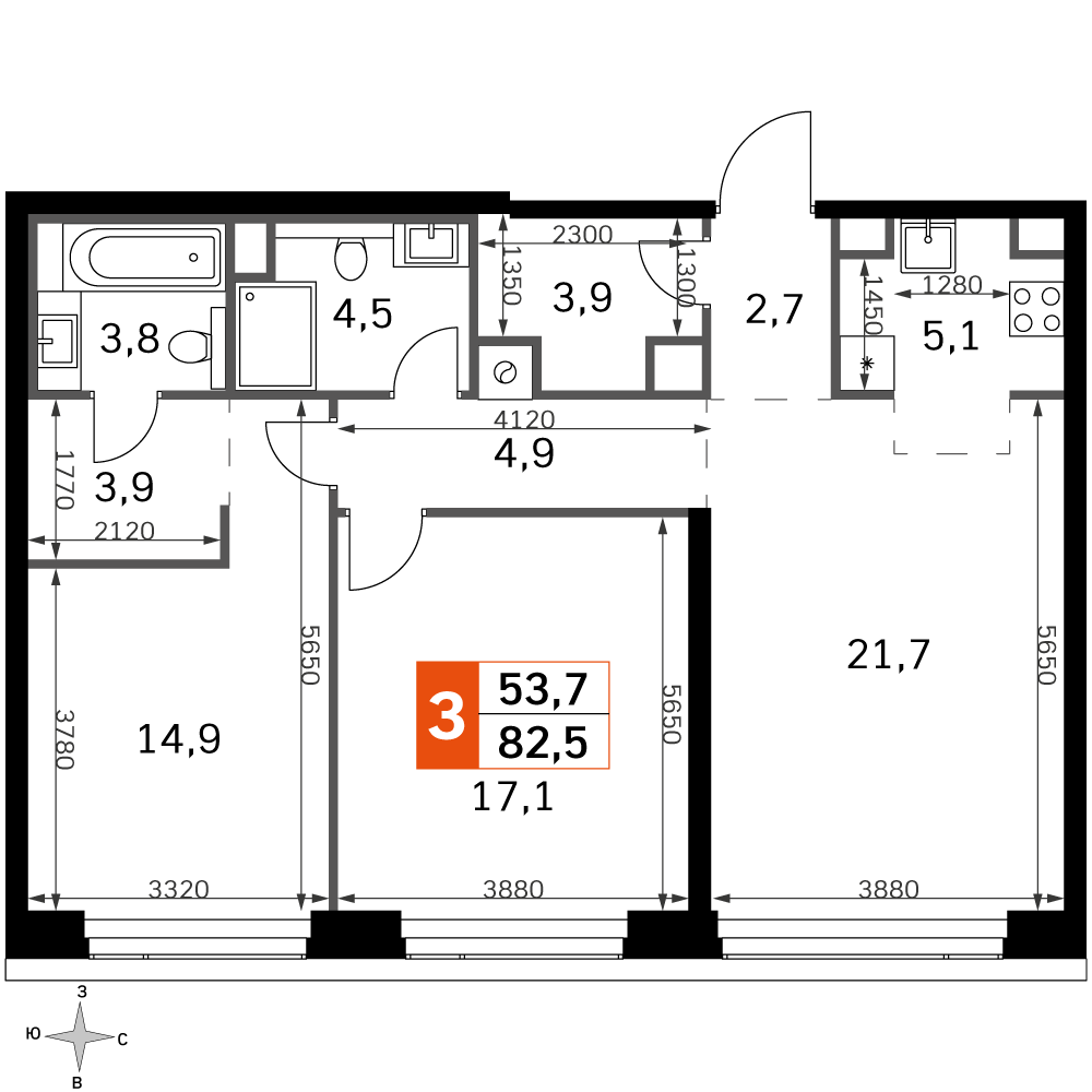 | 5 | Июнь 2028 | 1 | 53 | 1 | 1 | 3 | 72.3 | 66 020 745 | без отделки | 1 | |||
