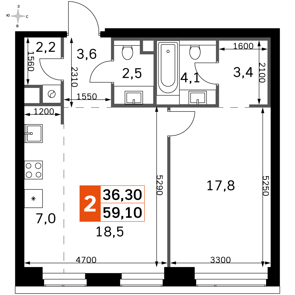 | 5 | Июнь 2028 | 1 | 35 | 6 | 6 | 3 | 70.1 | 60 086 215 | без отделки | ![]() | 6 | ||