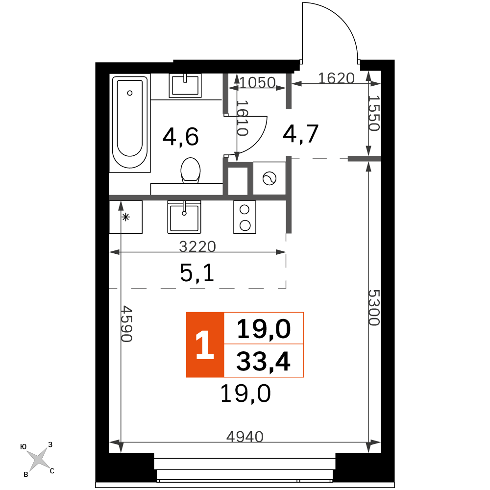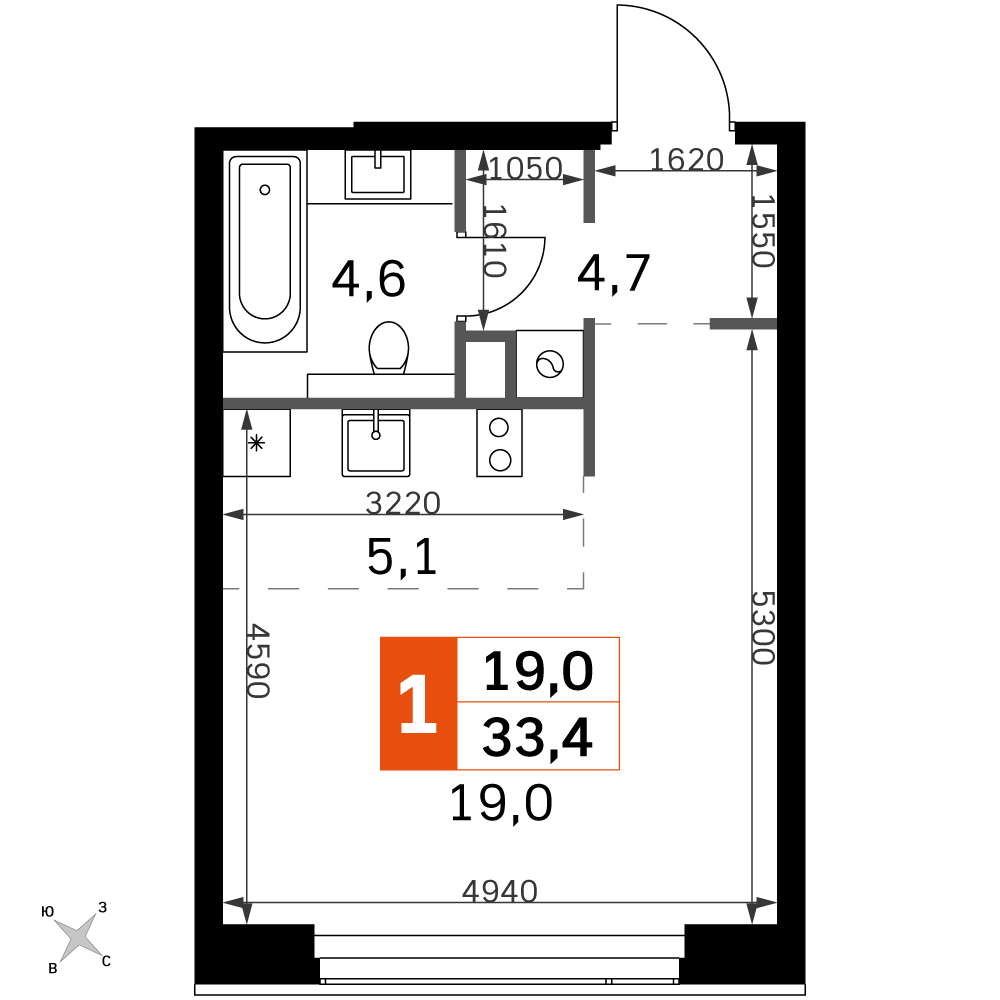 | 5 | Июнь 2028 | 1 | 53 | 2 | 2 | 1 | 33.4 | 33 825 850 | без отделки | ![]() | 2 | ||