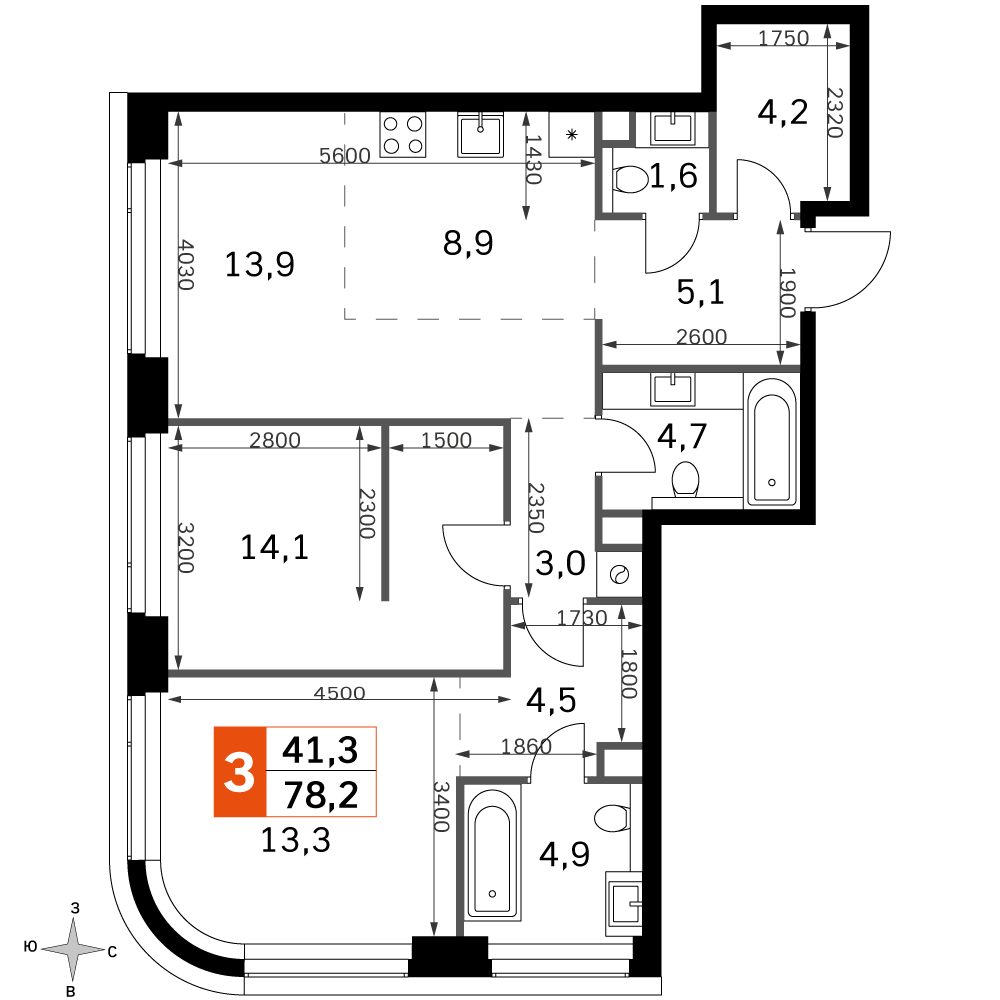 | 5 | Июнь 2028 | 1 | 3 | 13 | 13 | 4 | 85.6 | 67 418 560 | без отделки | ![]() | 13 | ||