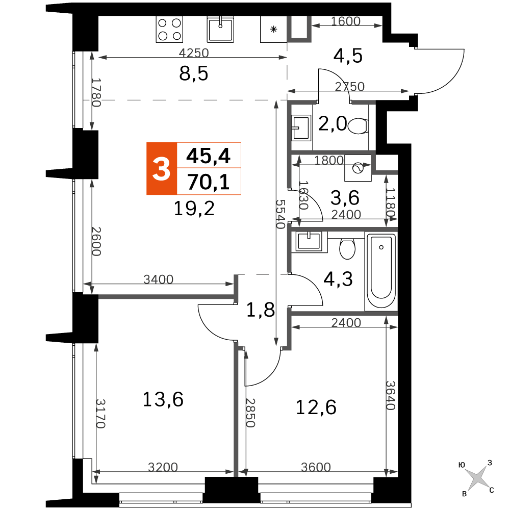 | 5 | Июнь 2028 | 1 | 3 | 1 | 1 | 3 | 70.5 | 56 040 450 | без отделки | ![]() | 1 | ||