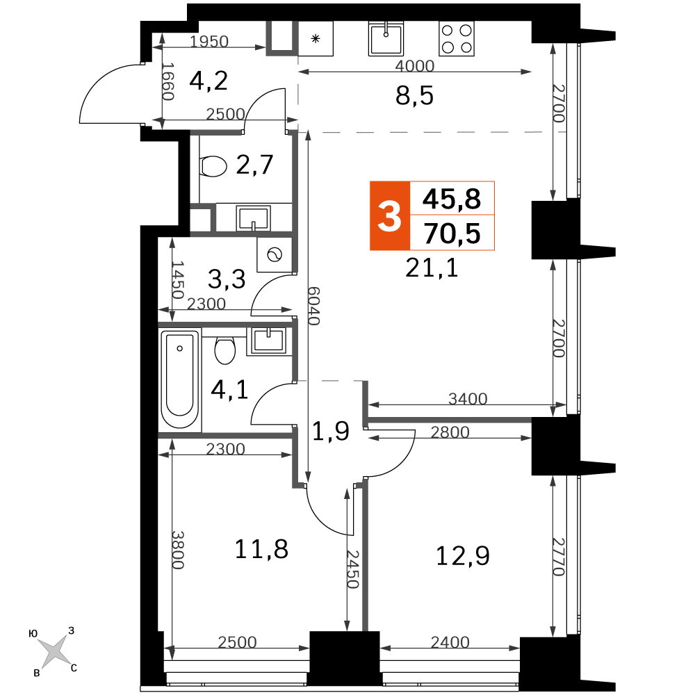 | 5 | Июнь 2028 | 1 | 2 | 1 | 1 | 3 | 70.5 | 56 040 450 | без отделки | 1 | |||