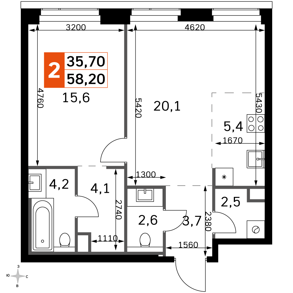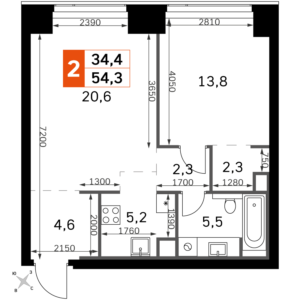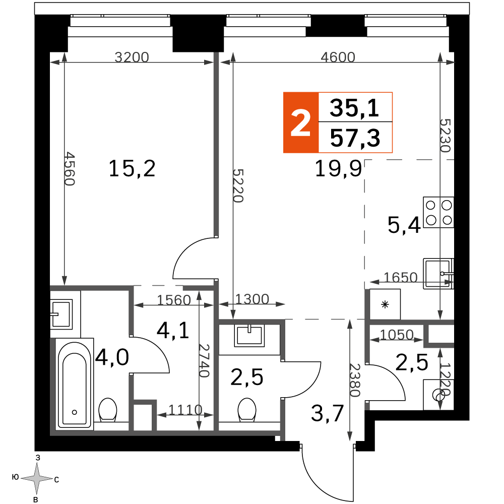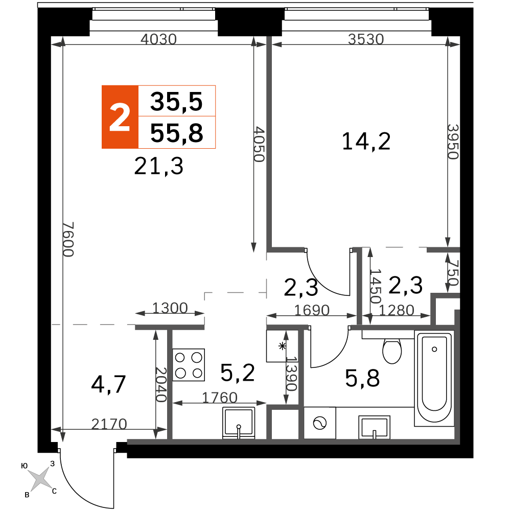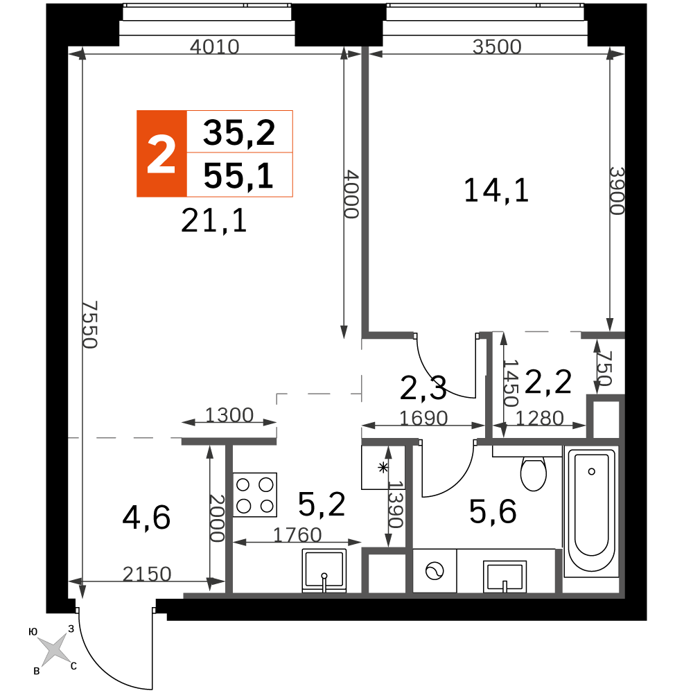 | 5 | Июнь 2028 | 1 | 35 | 10 | 10 | 2 | 55.1 | 43 272 785 | без отделки | ![]() | 10 | ||