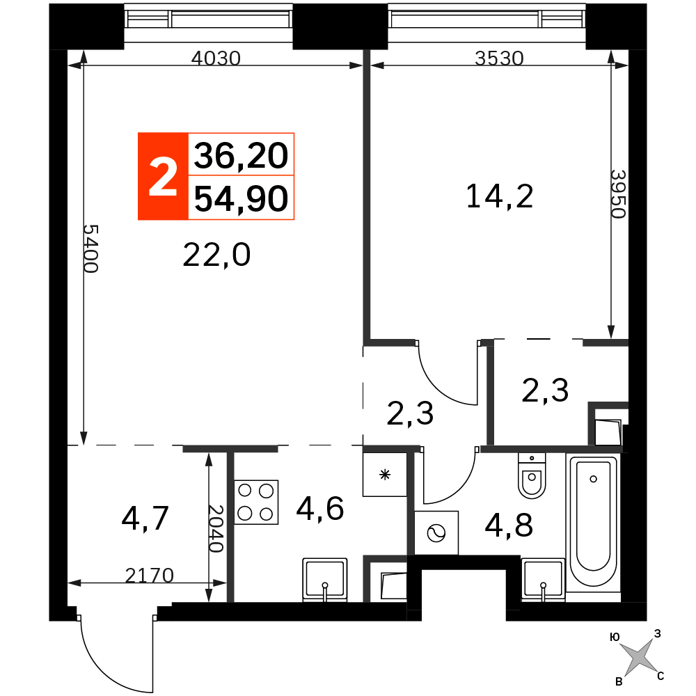 | 5 | Июнь 2028 | 1 | 54 | 11 | 11 | 2 | 47.7 | 46 202 220 | без отделки | 11 | |||