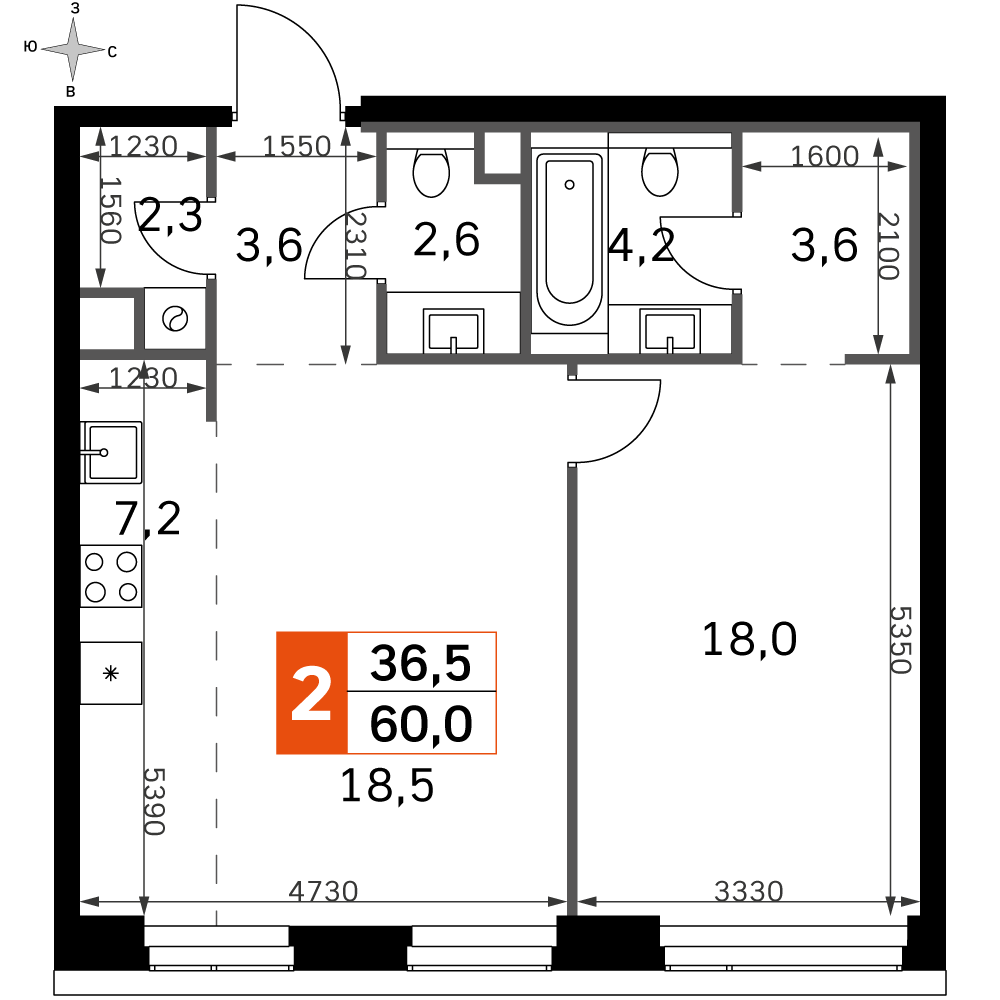 | 5 | Июнь 2028 | 1 | 48 | 1 | 1 | 3 | 72.3 | 64 845 870 | без отделки | ![]() | 1 | ||