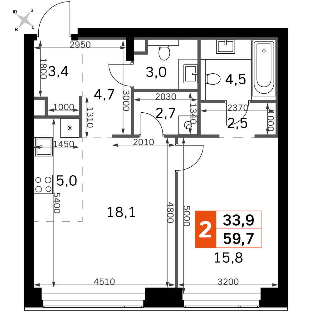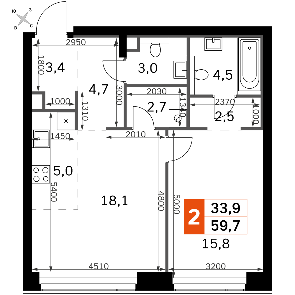 | 5 | Июнь 2028 | 1 | 45 | 3 | 3 | 2 | 58.8 | 48 001 380 | без отделки | ![]() | 3 | ||