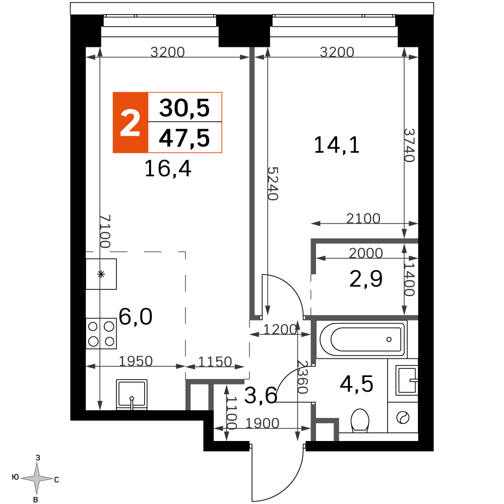| 5 | Июнь 2028 | 1 | 47 | 9 | 9 | 2 | 55.8 | 46 194 030 | без отделки | 9 | |||