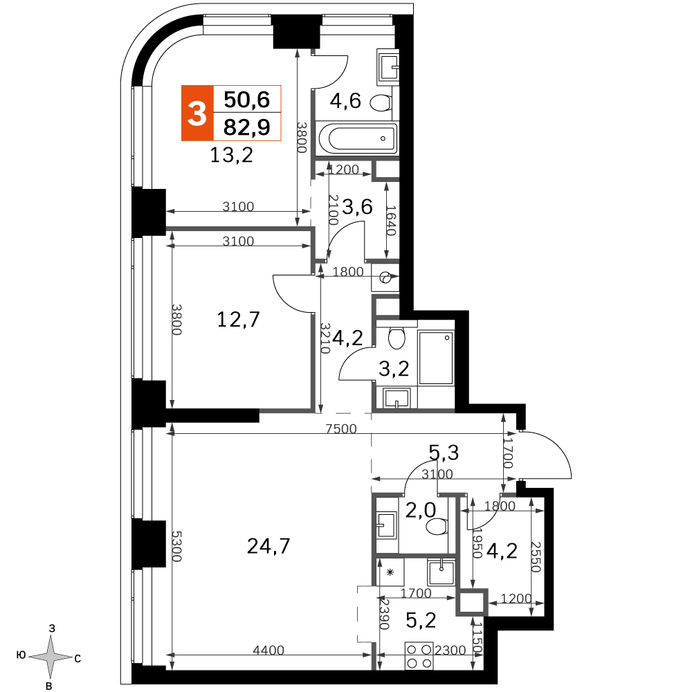 | 5 | Июнь 2028 | 1 | 31 | 13 | 13 | 4 | 86.9 | 72 461 565 | без отделки | 13 | |||