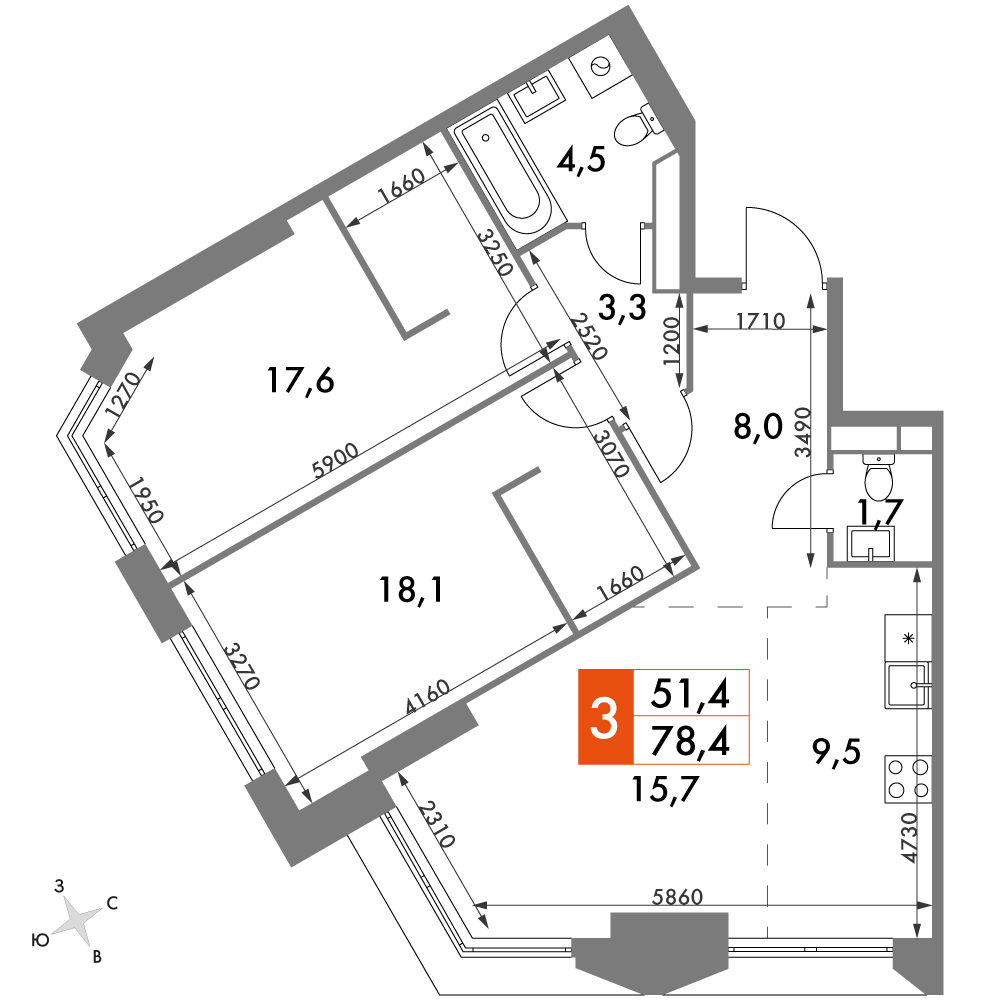 | 3 | Декабрь 2024 | 3 | 34 | 1 | 1 | 3 | 78.4 | 47 698 560  | с отделкой | ![]()  | 1 | ||