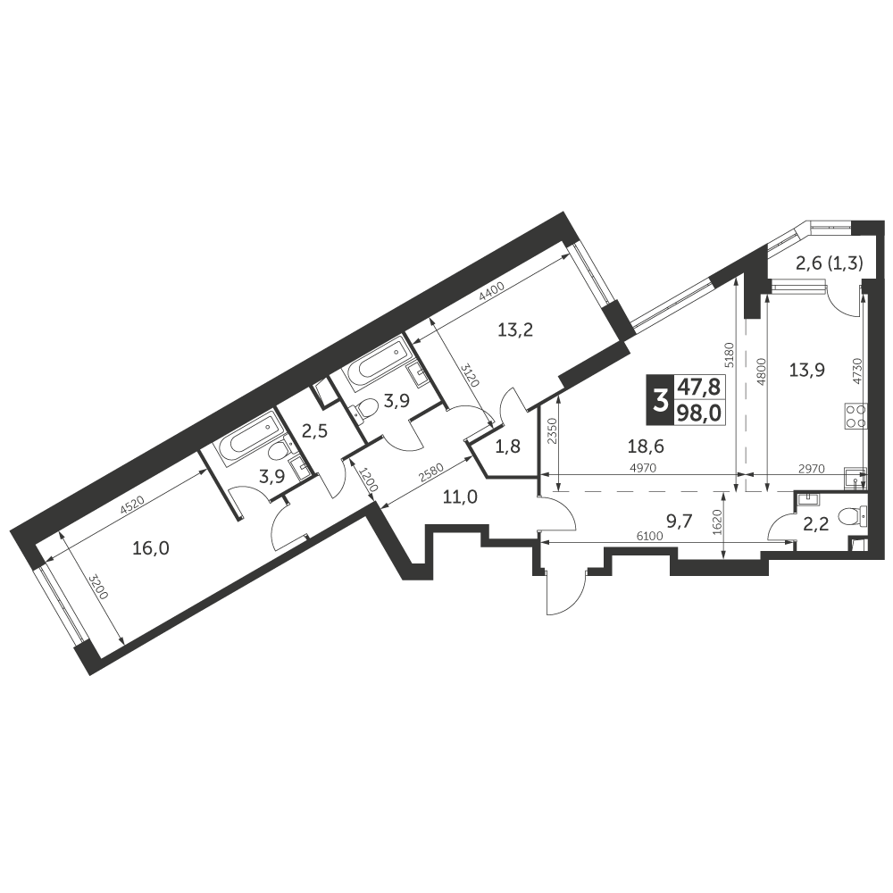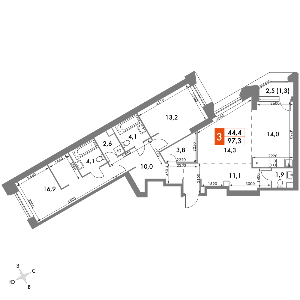 | 3 | Декабрь 2024 | 3 | 16 | 2 | 2 | 3 | 96.8 | 51 439 520  | с отделкой | ![]()  | 2 | ||