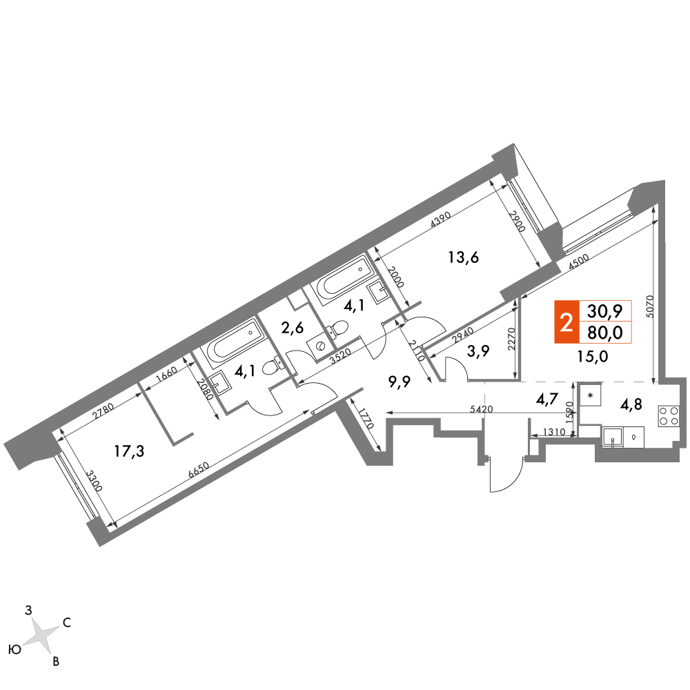 | 3 | Декабрь 2024 | 2 | 39 | 4 | 4 | 2 | 66.7 | 36 551 600  | без отделки | 4 | |||