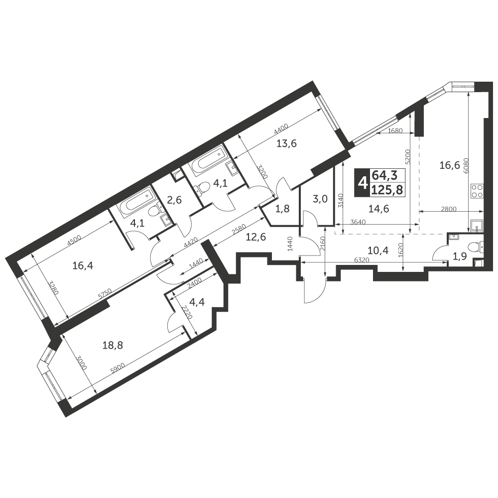 ГлавнаяЖилая недвижимостьЖК "Архитектор"3-комнатная квартира № 3