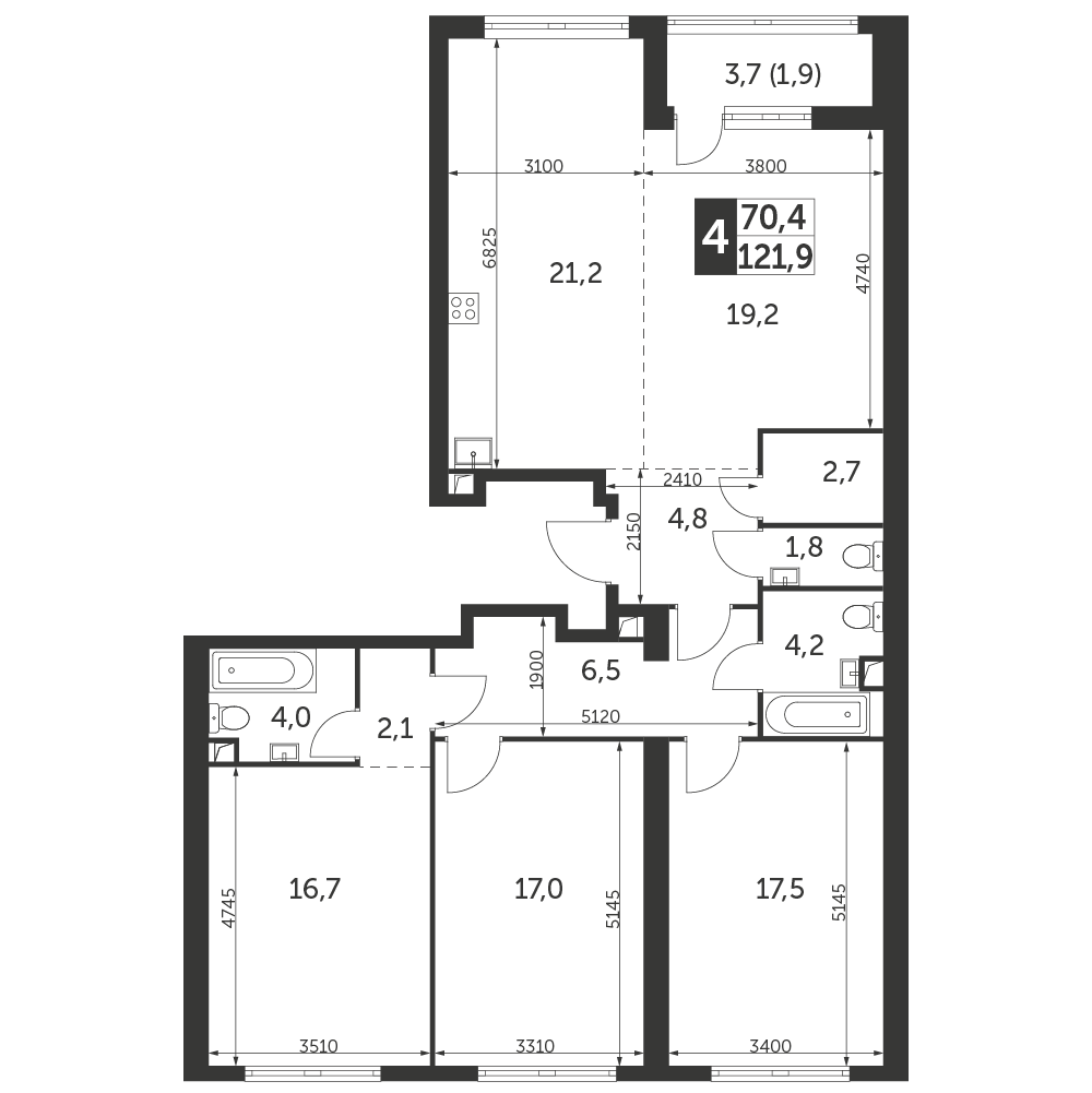 Продажа 4-комнатной квартиры № 1, 121.9 кв.м, этаж 28/28 в ЖК "Архитектор"