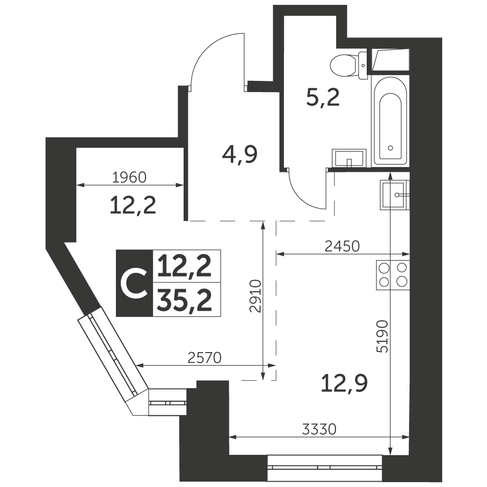 Продажа 1-комнатной квартиры № 1, 35.2 кв.м, этаж 27/47 в ЖК "Архитектор"