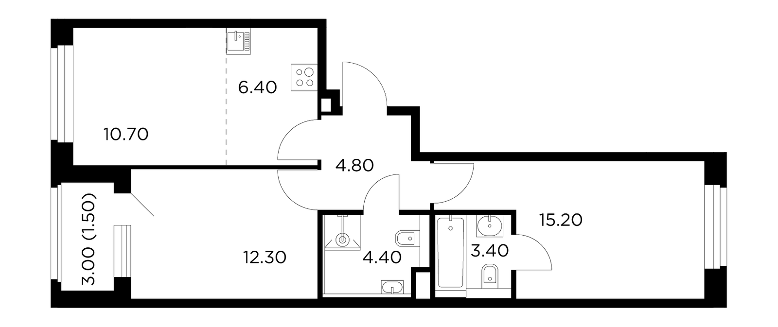 • Более 70 видов планировок — от студий до просторных трёхкомнатных квартир с мастер-спальнями и гостевыми санузлами.