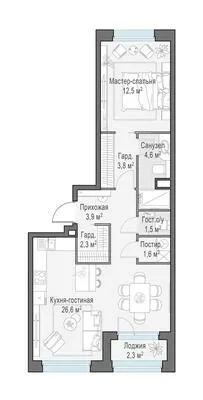 Продажа 3-комнатной квартиры № 1, 62.4 кв.м, этаж 12/12 в Жилые кварталы «Белый Град»