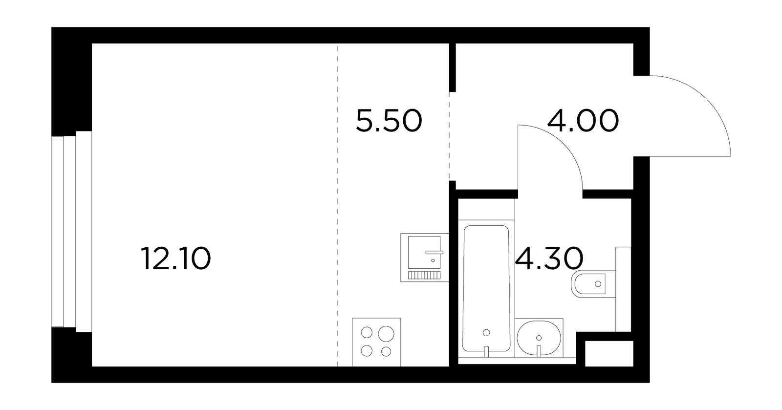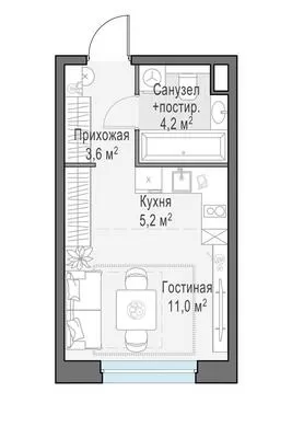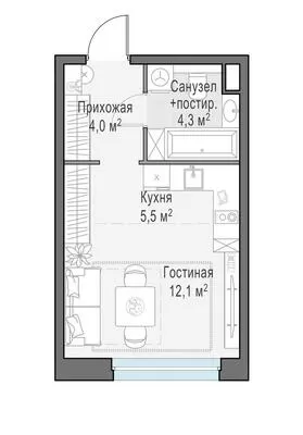 24 м² · 1 комната · 12/21 этаж · Сентябрь 2026
