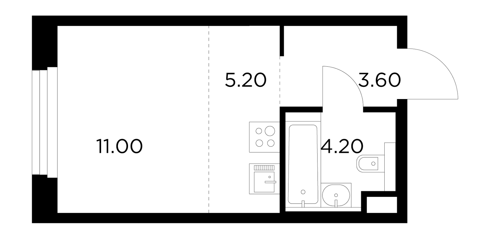 24 м² · 1 комната · 14/21 этаж · Сентябрь 2026