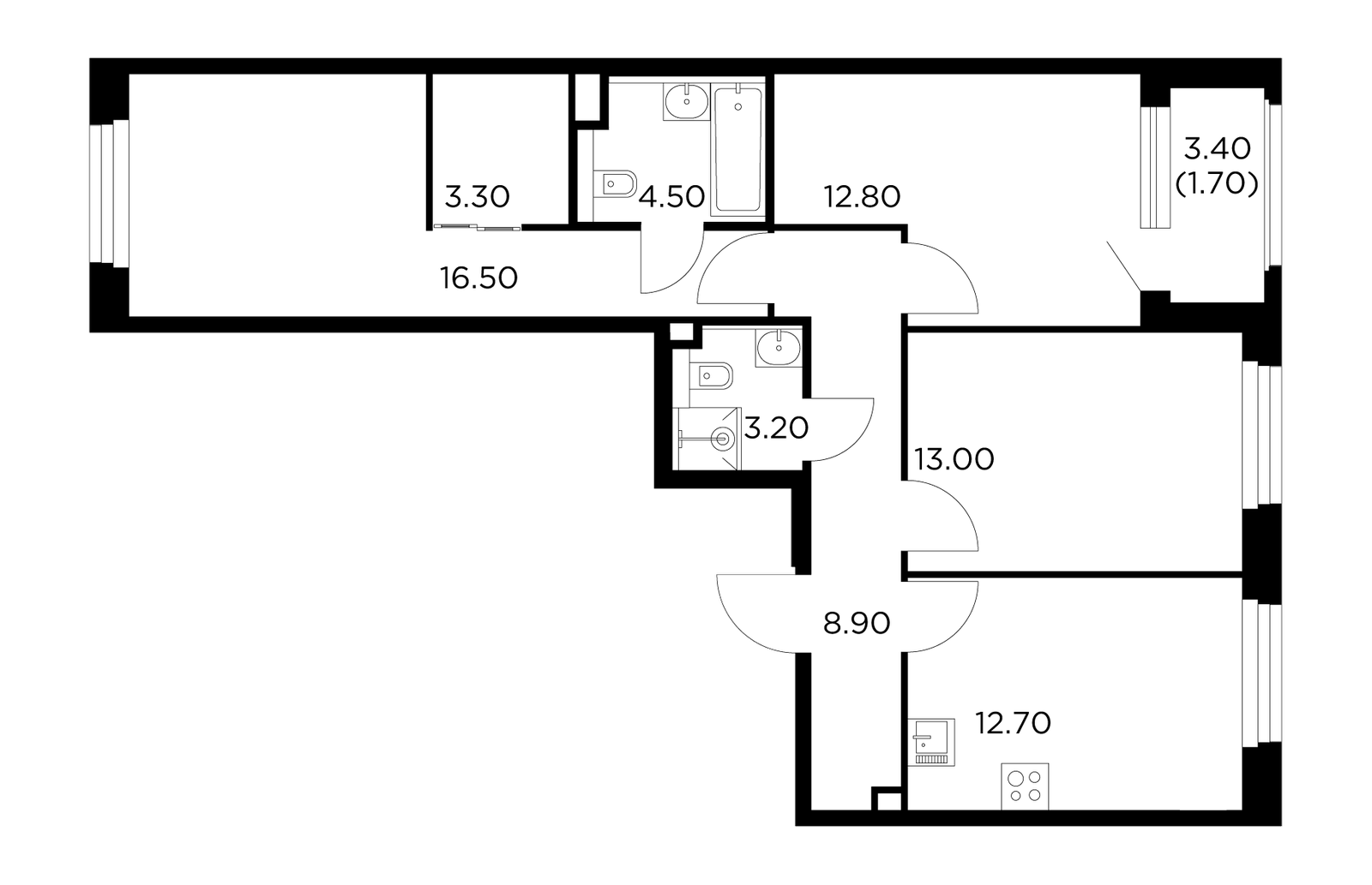 76.5 м² · 3 комнаты · 12/21 этаж · Сентябрь 2026