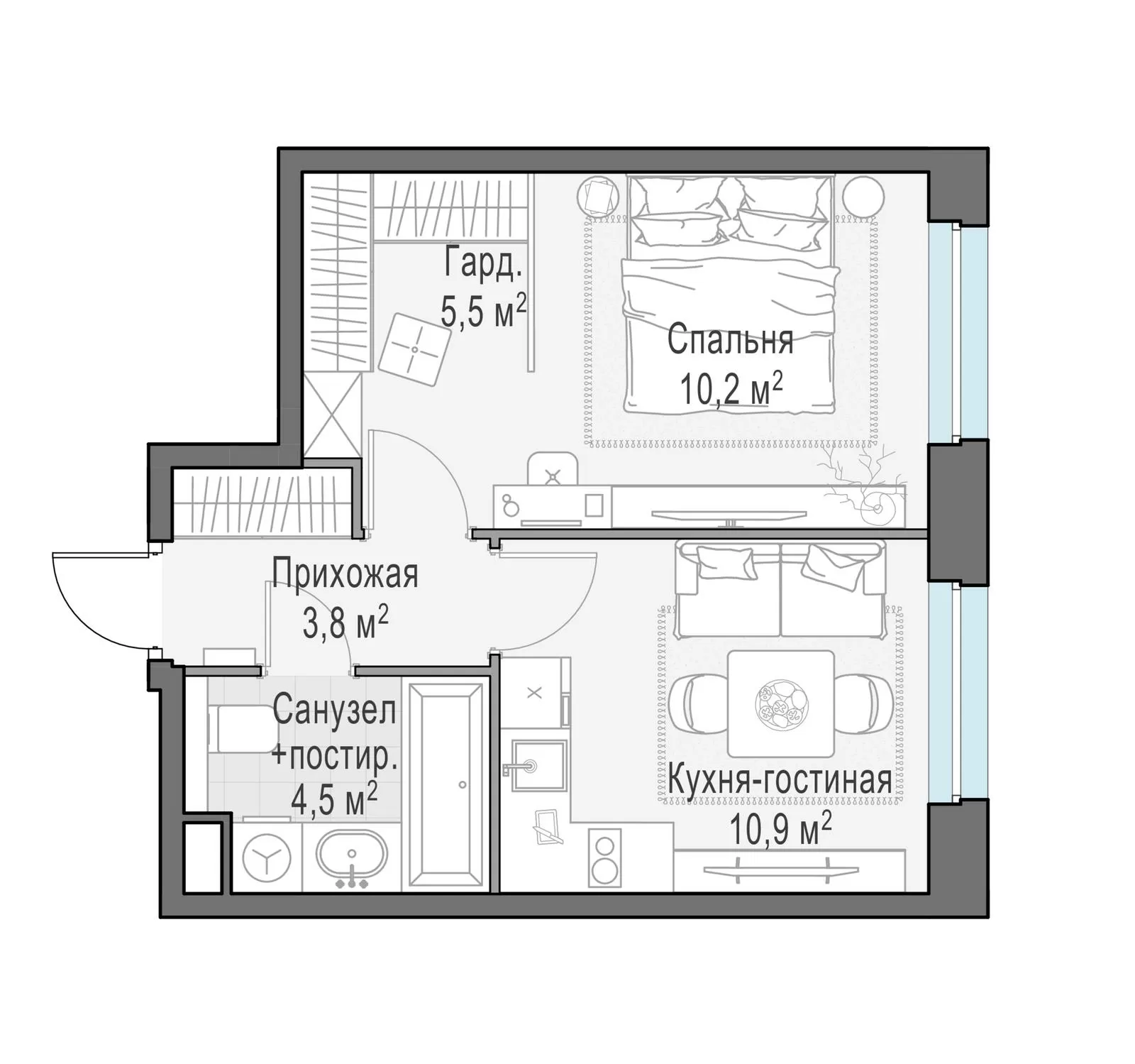 • Более 70 видов планировок — от студий до просторных трёхкомнатных квартир с мастер-спальнями и гостевыми санузлами.