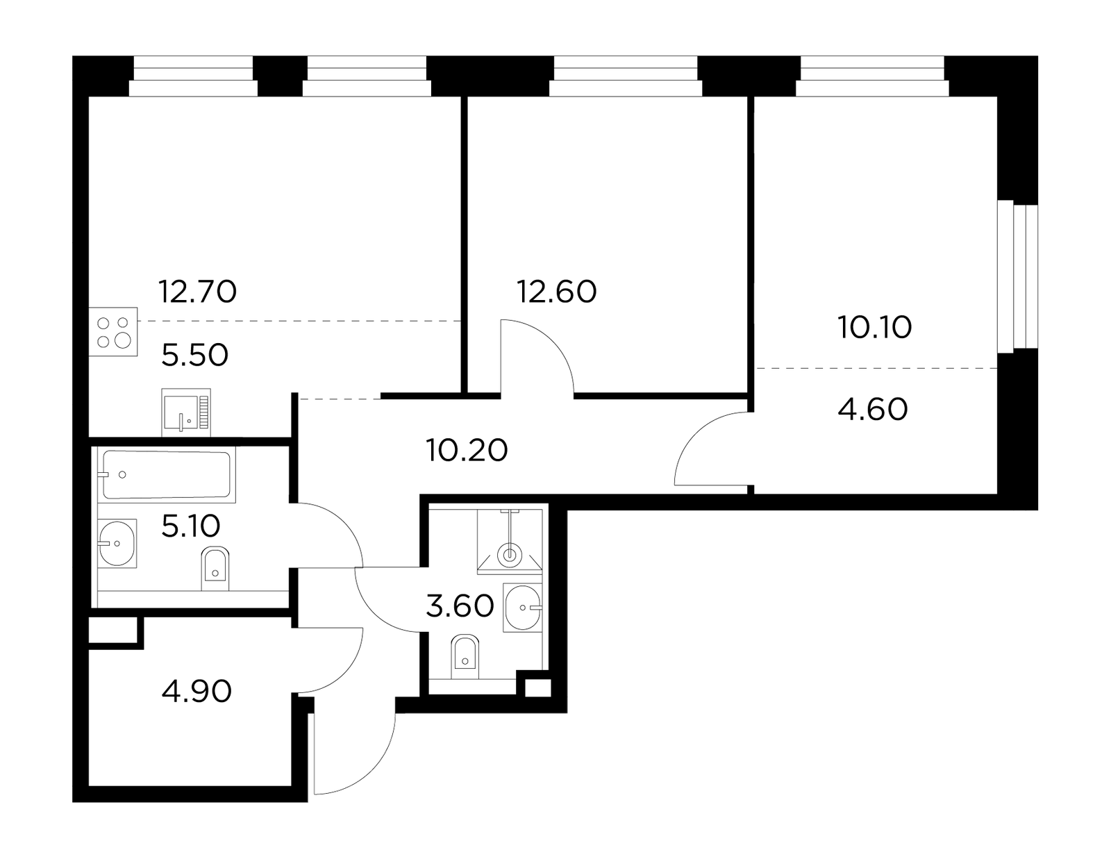 • Более 70 видов планировок — от студий до просторных трёхкомнатных квартир с мастер-спальнями и гостевыми санузлами.
