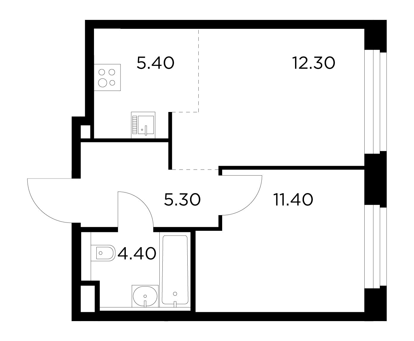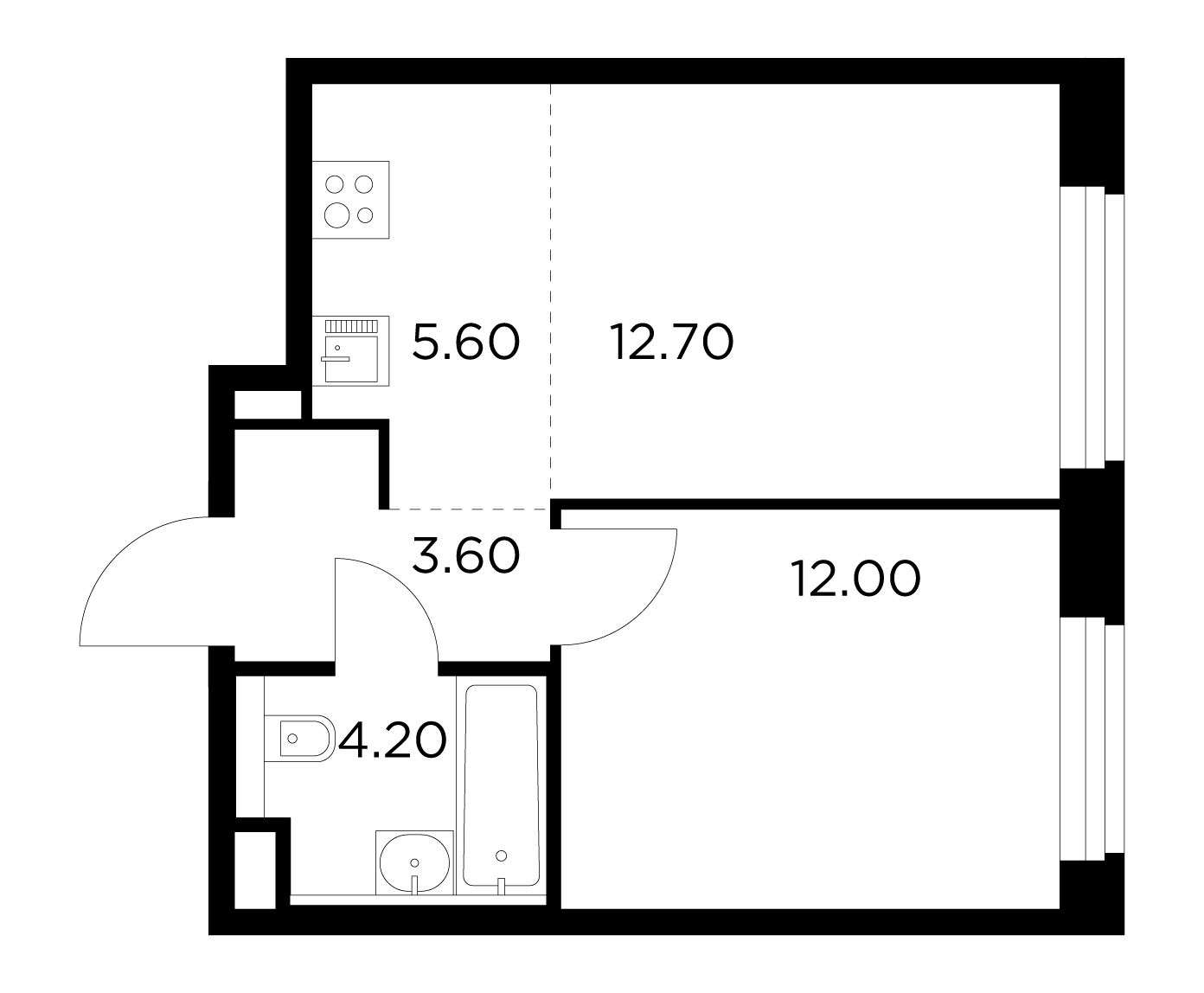38 м² · 2 комнаты · 12/19 этаж · Сентябрь 2026