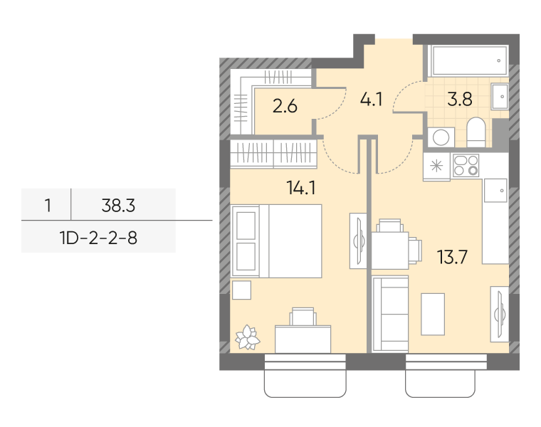 | К1 (Очередь 2, Этап 2.5) | Июнь 2027 | 1 | 8 | 4 | 4 | 2 | 59.5 | 28 768 190 | без отделки | ![]() | 4 | ||