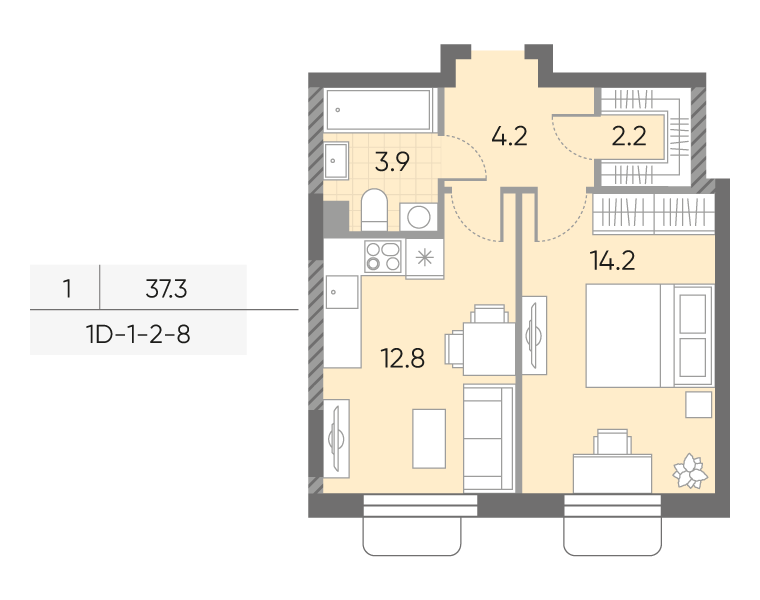 | К1 (Очередь 2, Этап 2.5) | Июнь 2027 | 2 | 8 | 4 | 4 | 1 | 38.3 | 22 889 765 | без отделки | ![]() | 4 |