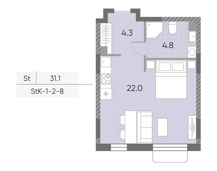 | К1 (Очередь 2, Этап 2.5) | Июнь 2027 | 1 | 8 | 2 | 2 | 1 | 31.1 | 17 749 609 | без отделки | ![]() | 2 | ||