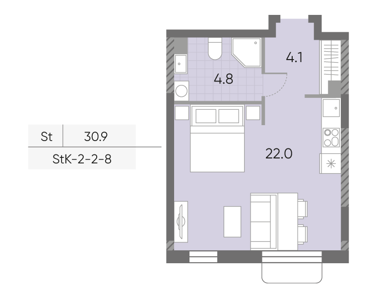 | К1 (Очередь 2, Этап 2.5) | Июнь 2027 | 1 | 8 | 3 | 3 | 1 | 30.9 | 17 809 956 | без отделки | ![]() | 3 | ||