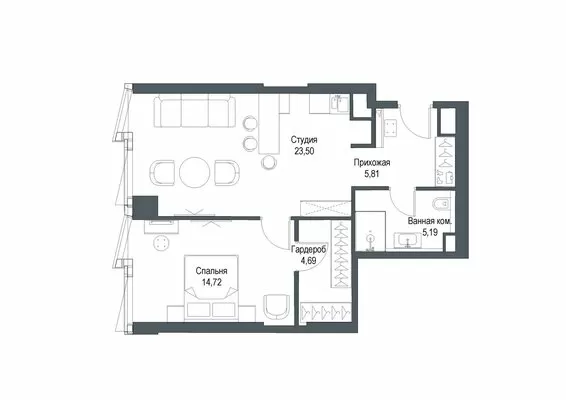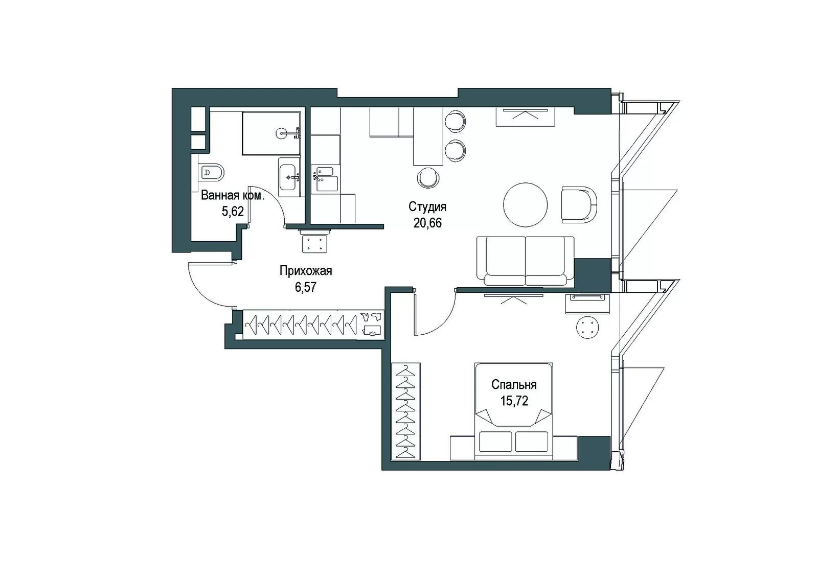 47.2 м² · 1 комната · 5/58 этаж · Декабрь 2025