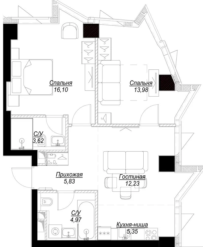 ГлавнаяЖилая недвижимостьЖК Феймос (Famous)2-комнатная квартира № 2