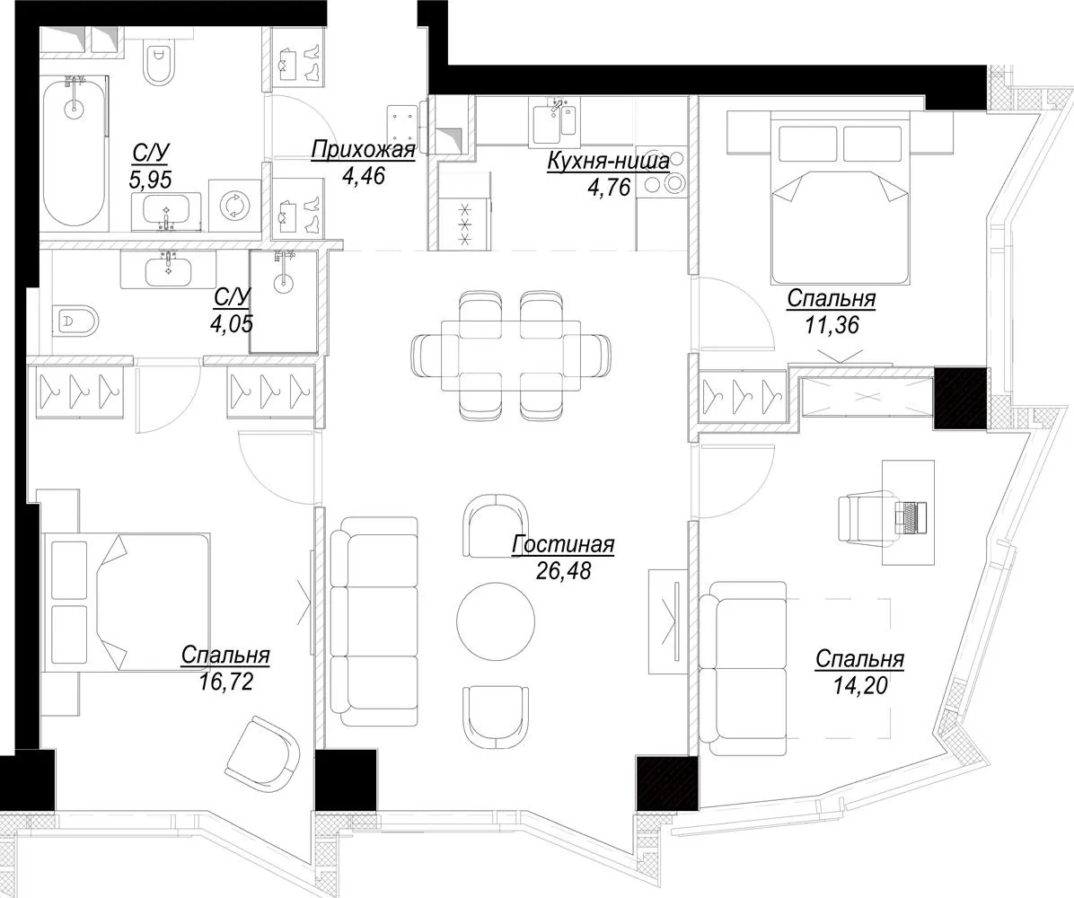 • Эргономичные авторские планировки и панорамное остекление Schüco по всему фасаду.