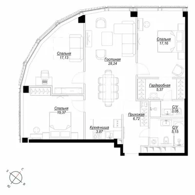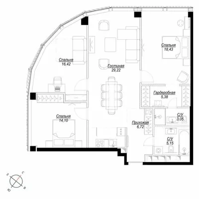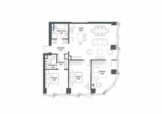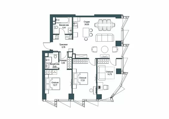 ГлавнаяЖилая недвижимостьЖК Феймос (Famous)3-комнатная квартира № 1