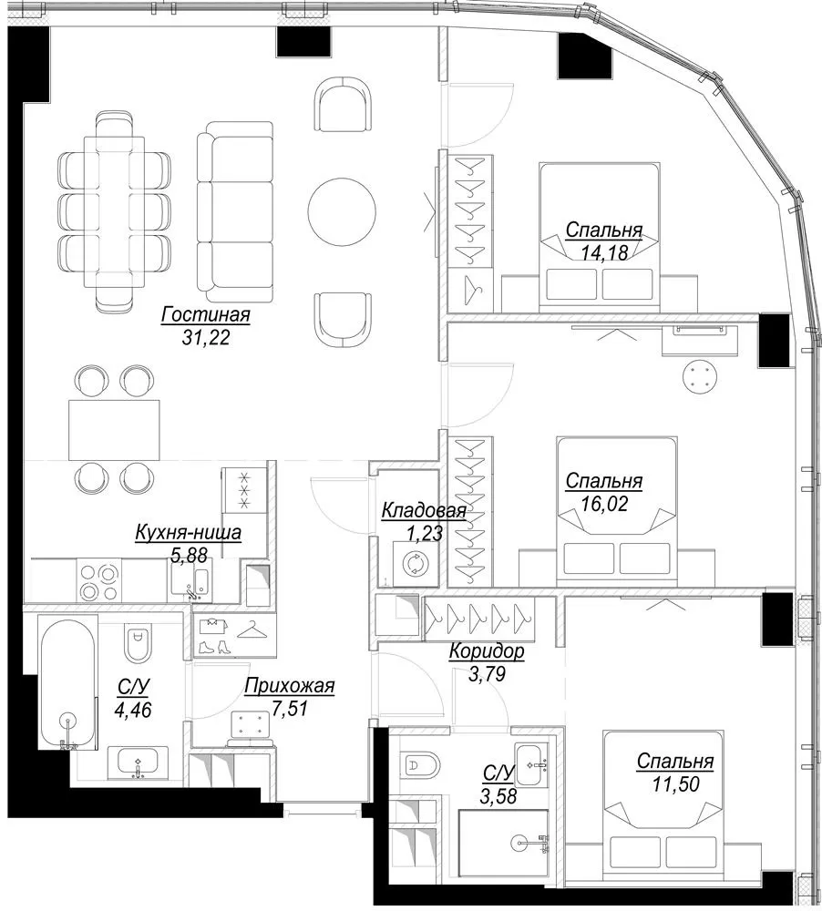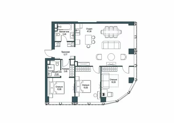100 м² · 3 комнаты · 22/58 этаж · Декабрь 2025