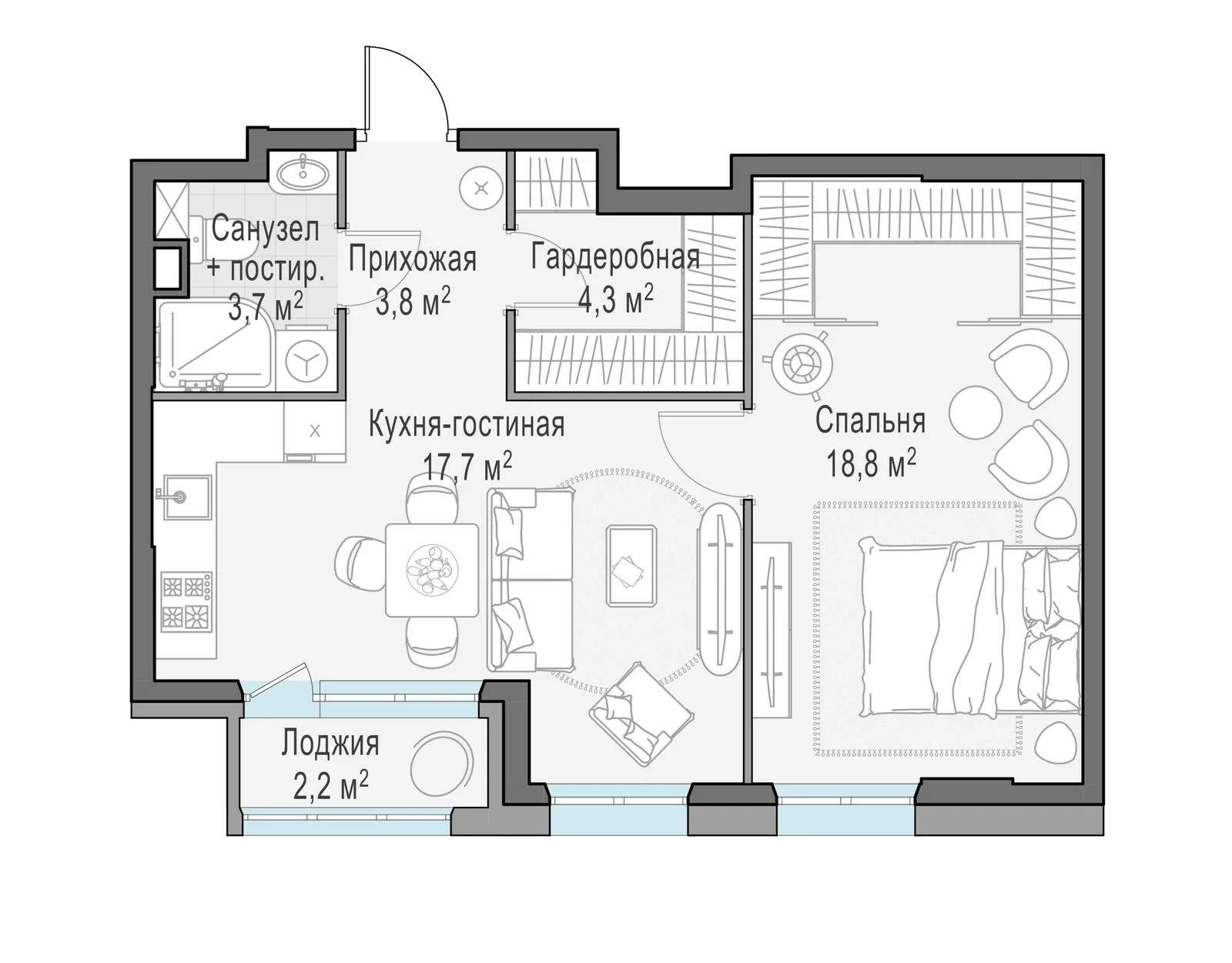 ГлавнаяЖилая недвижимостьЖК «Филатов Луг»2-комнатная квартира № 1