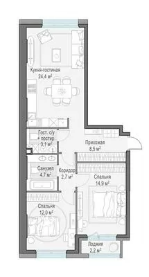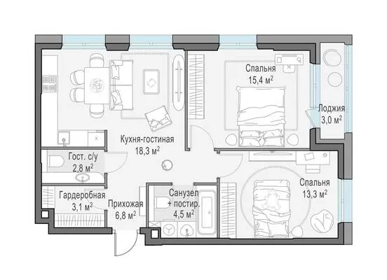 ГлавнаяЖилая недвижимостьЖК «Филатов Луг»3-комнатная квартира № 6