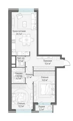 65.1 м² · 3 комнаты · 10/2 этаж · Апрель 2026
