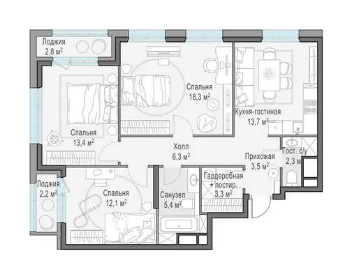 ГлавнаяЖилая недвижимостьЖК «Филатов Луг»3-комнатная квартира № 7