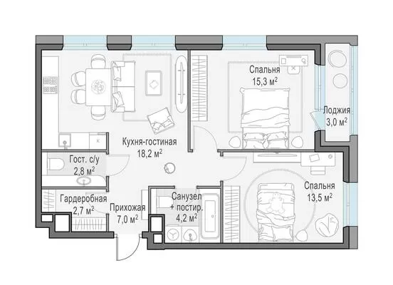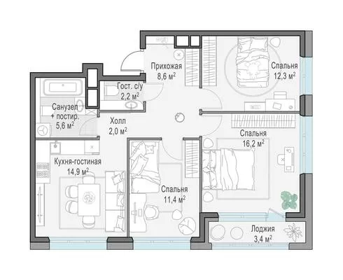 ГлавнаяЖилая недвижимостьЖК «Филатов Луг»3-комнатная квартира № 6